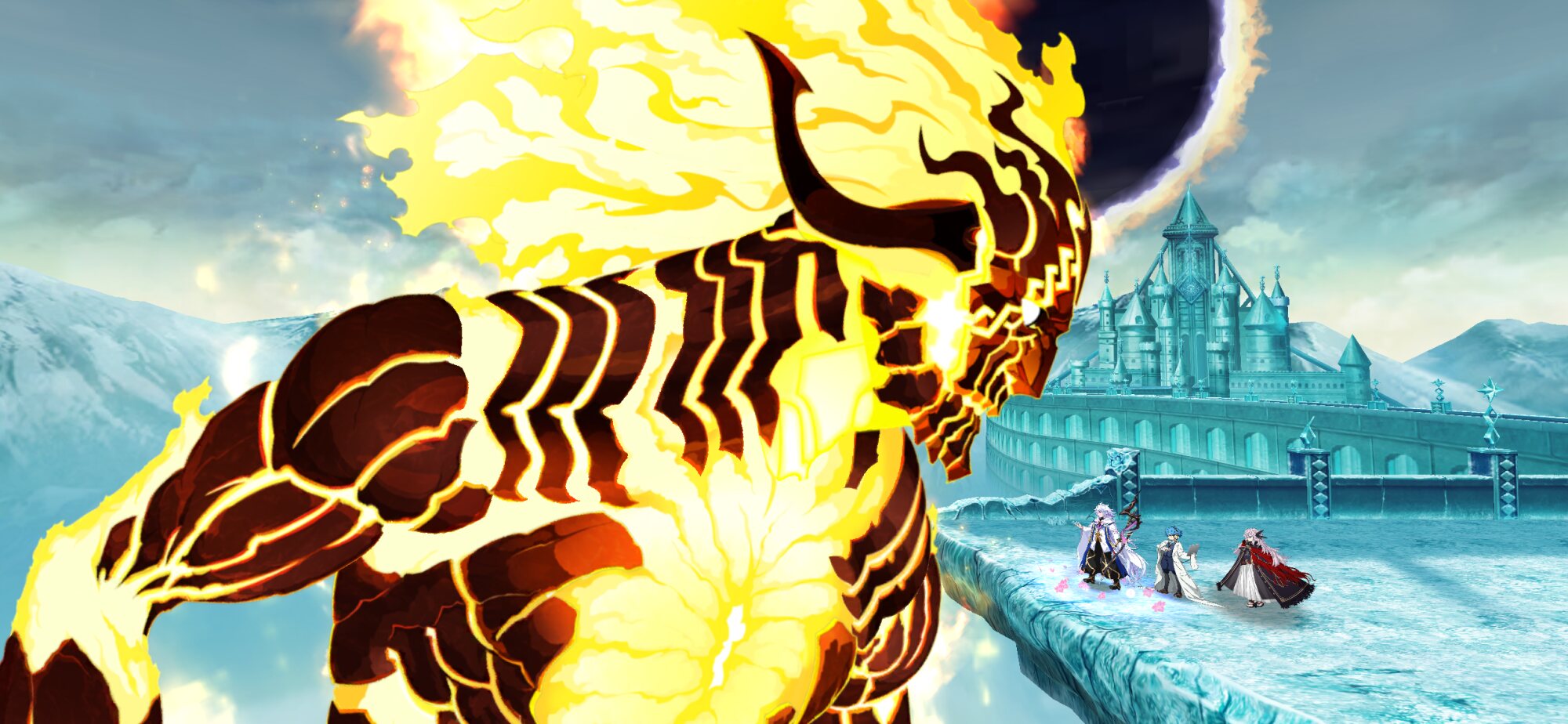 マーベルのゲームでこんな感じでドルマムゥや炎の巨人と戦うステージがあったの思い出した。まほよ劇場版が来るまでに世界が滅びないのを切に願うわ。マジで。