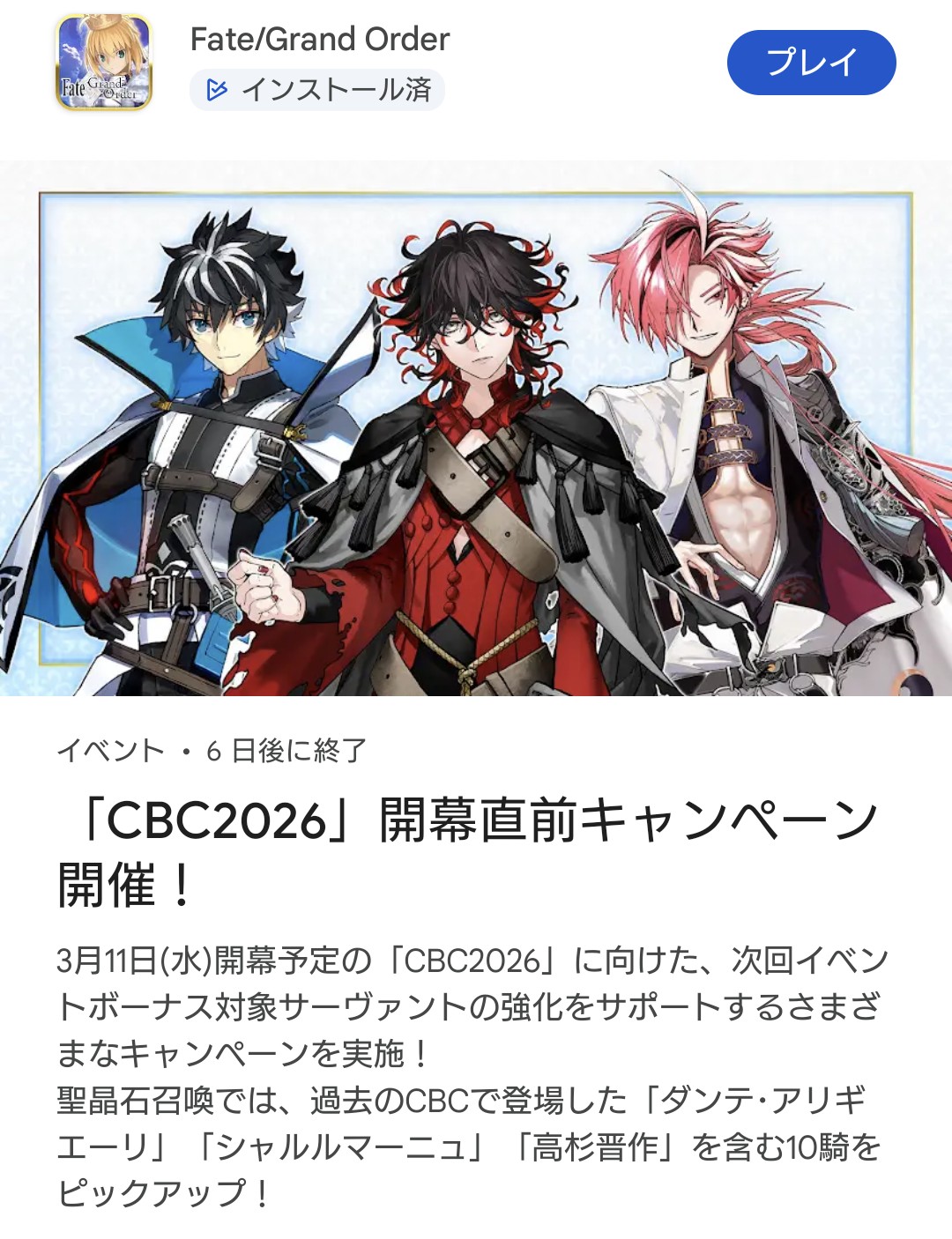 公式HP https://www.fate-go.jp歴代のCBC?やっぱり怪盗天草かな、良い味出てる