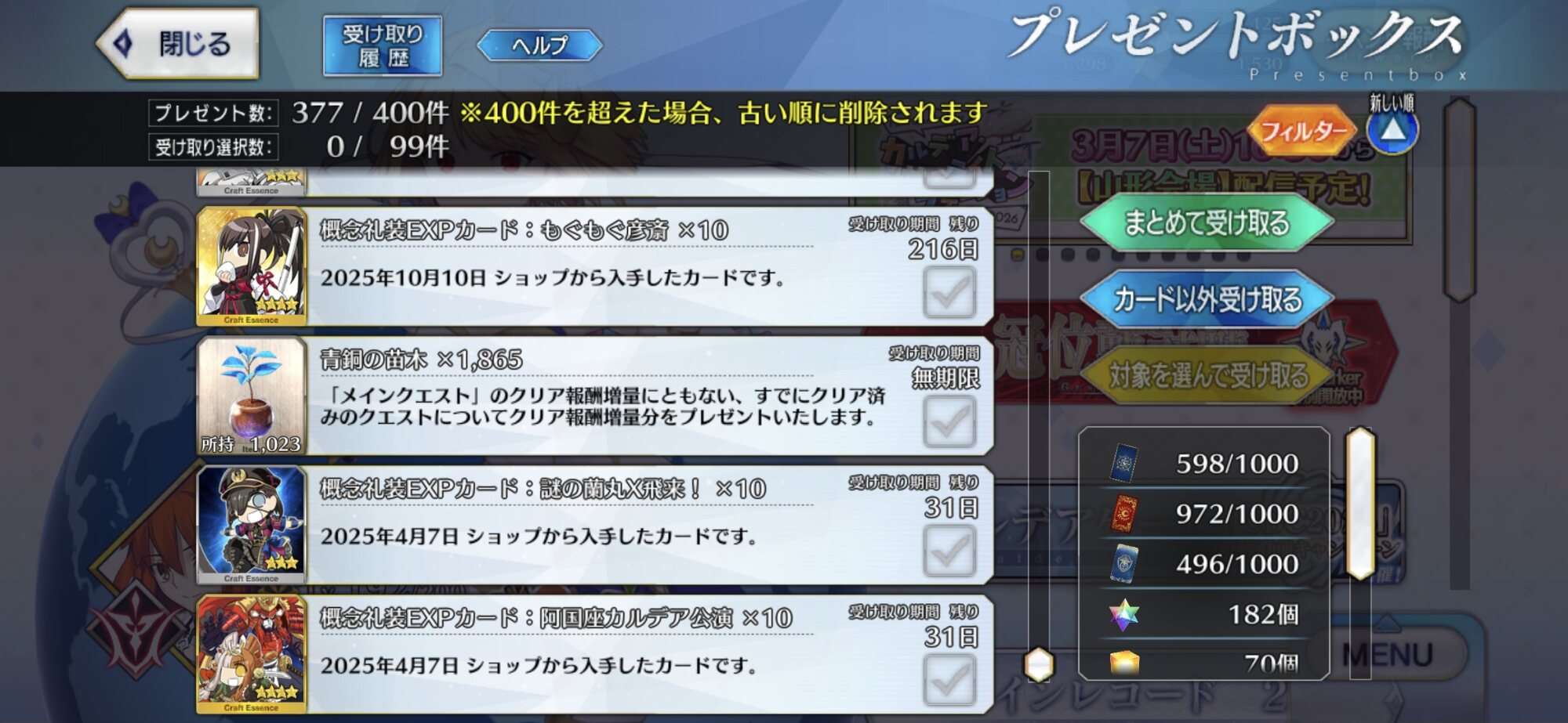 未クリアのオルガマリーシナリオ読まされるのと開放戦代わりのソロモンとの対戦がありますね