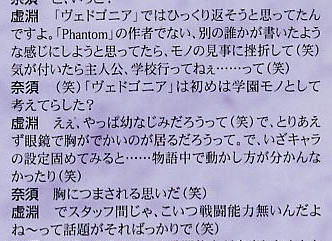 虚淵も名作家ではあるんだけど、作家としてのメンタルはそんなに強い方ではないというか、