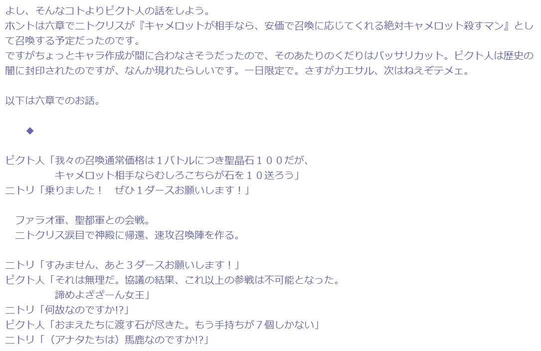 と思ったが、時期外れなうえに型月に関わってるたけのこ(星人)が既にいた各クラス毎の星5確定福袋(どれか一回)買うと星5ランダムで出てくる特別な呼符プレゼント!とかないかな