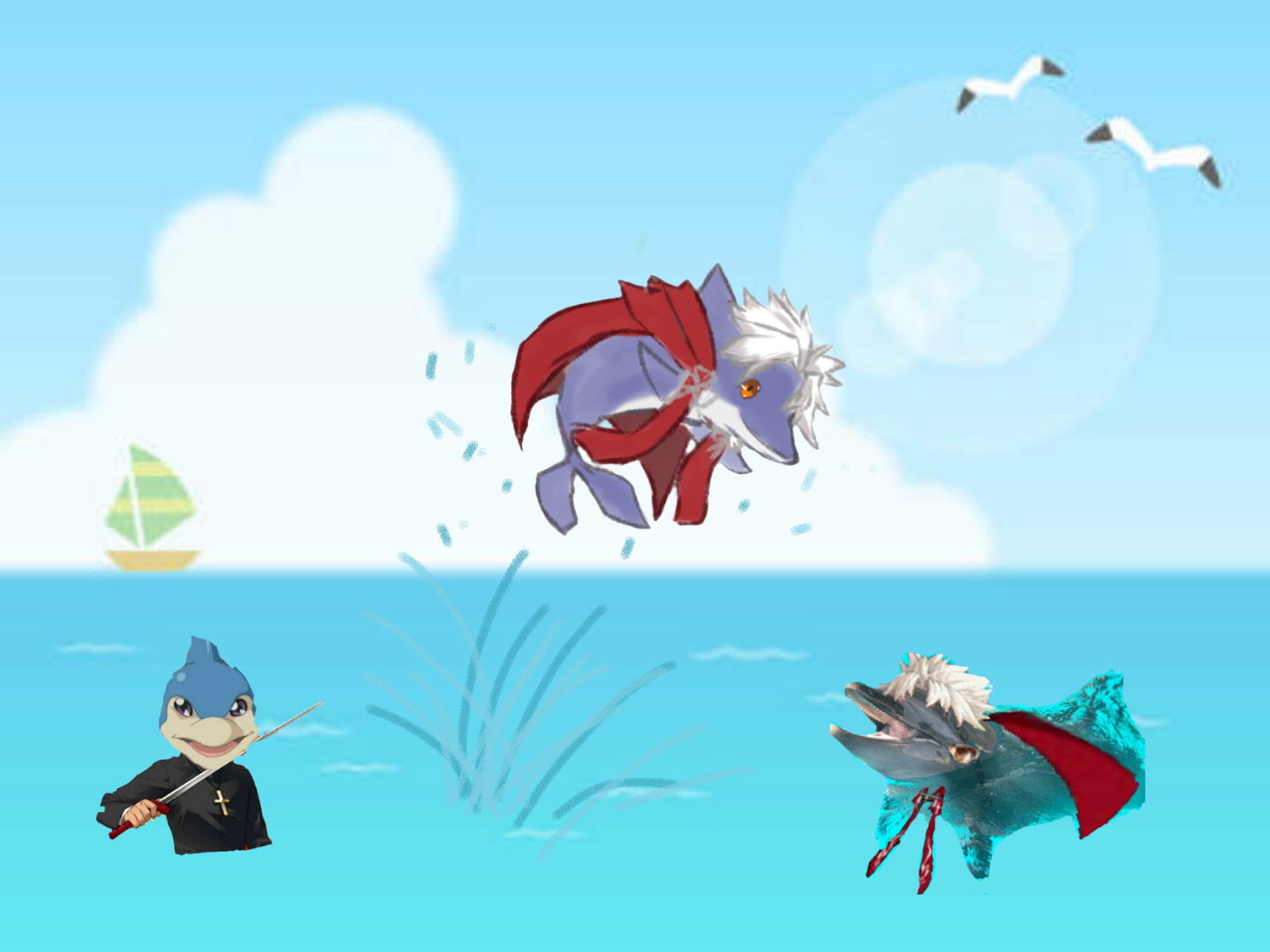 海にイルカ
