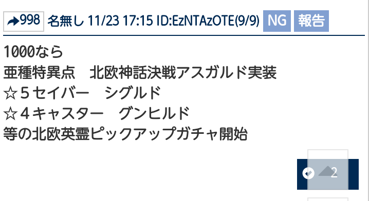 間もなく開催!>>1000ならガチャでみんなにピックUP星5鯖が手に入る