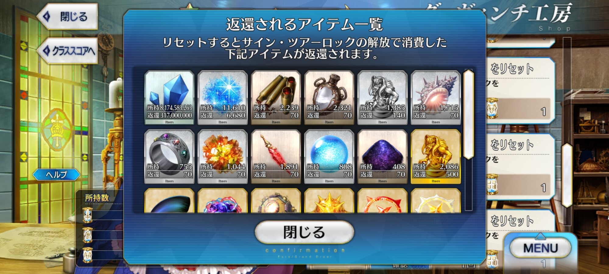 ちょっと強化コンプリートの画面を録る為にリセットしてみたけど、