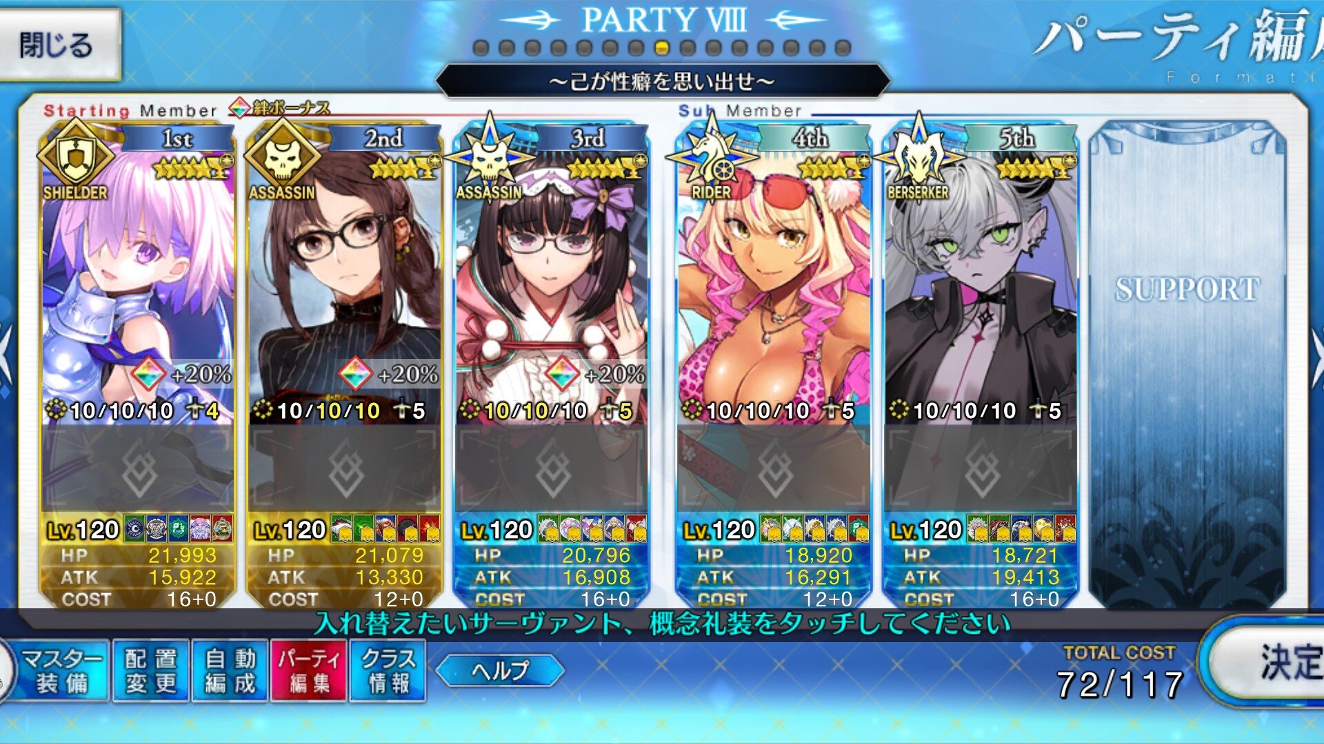 編成するだけでランチタイムとティータイム(フレンド時の倍率)をメンバーに配分することができます。