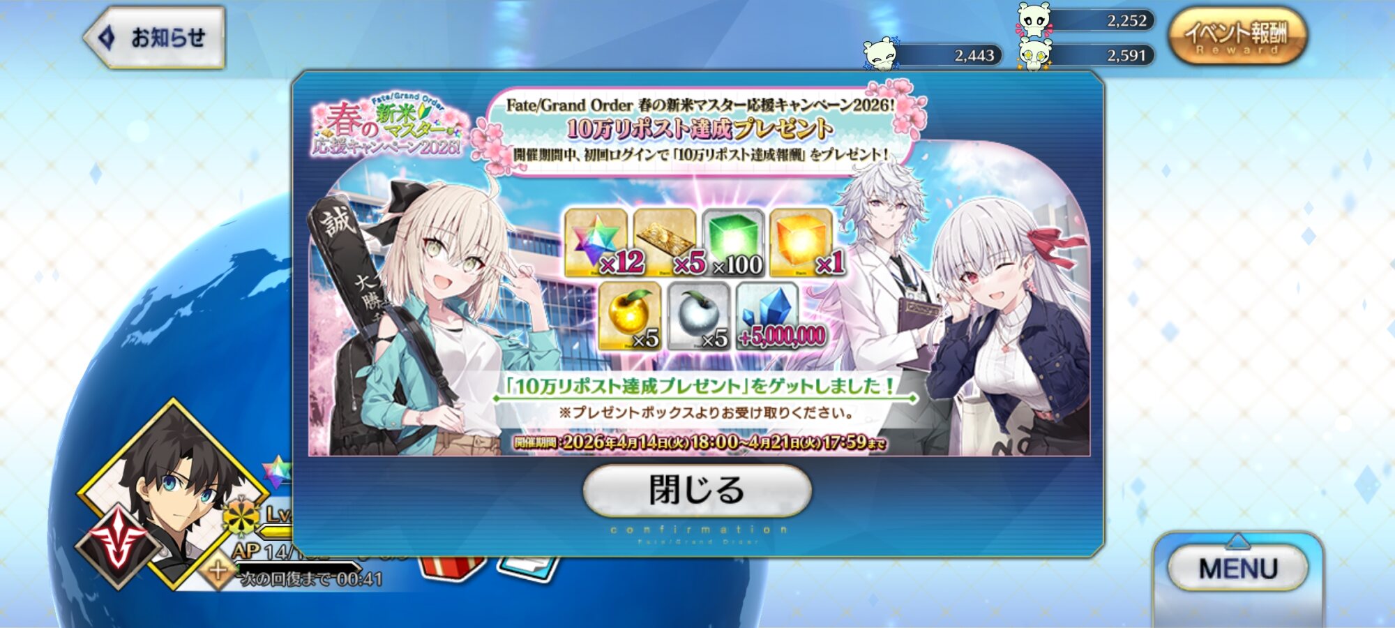 公式HP https://www.fate-go.jp……もしもし、警察ですか? はい。はい。雑スレのほうから何かが暴れわまわるような音が……