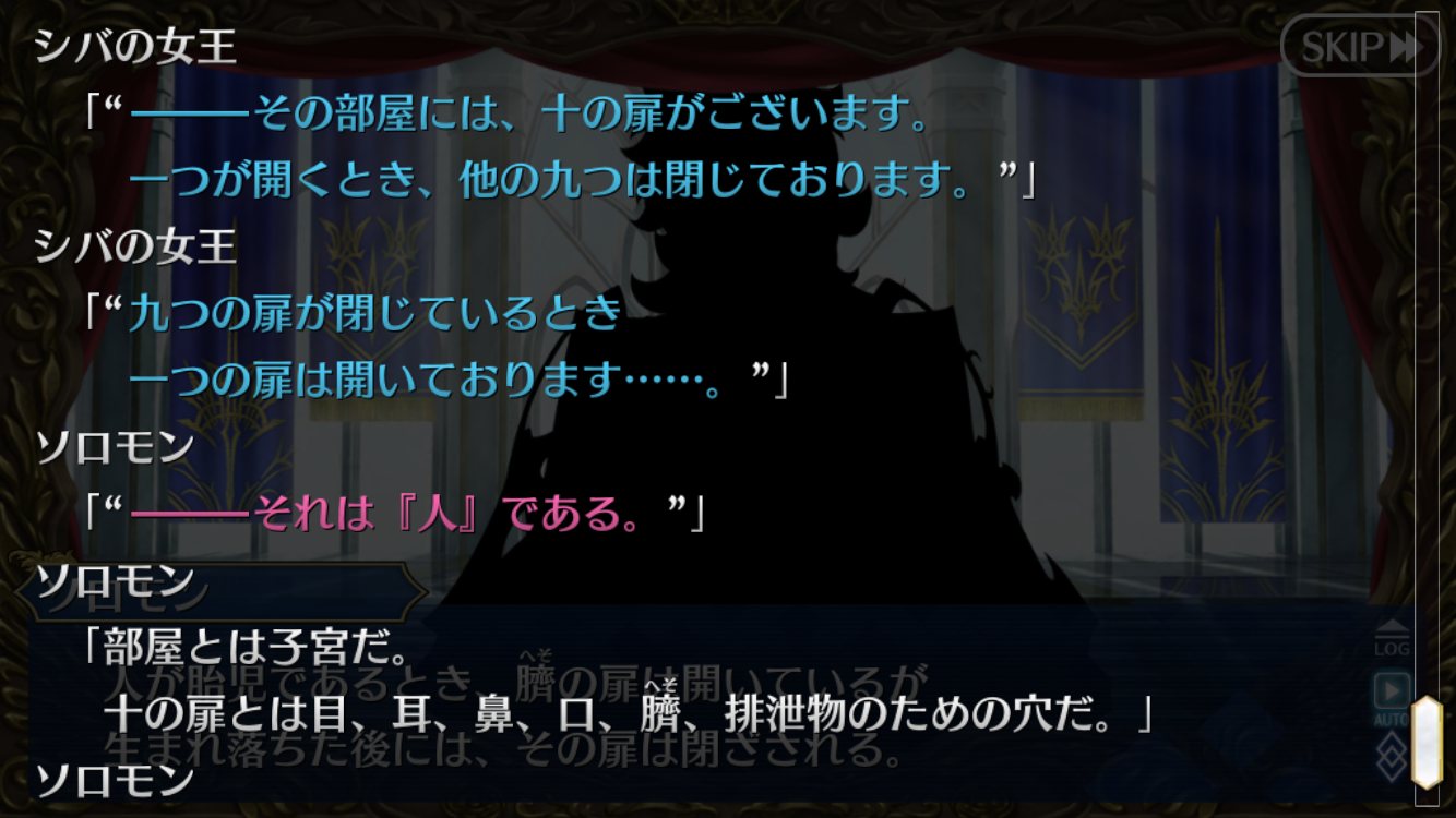 そりゃ元ネタどうり見境なくですよ…作中的にはマハタリでも未実装鯖お約束の影やフードでもいいのにシバの女王の姿が=豪華ティテュバなのは偶然じゃないよなぁ……。たとえ女王本人じゃなくとも近い点はあるからの選出だろうと見てる。