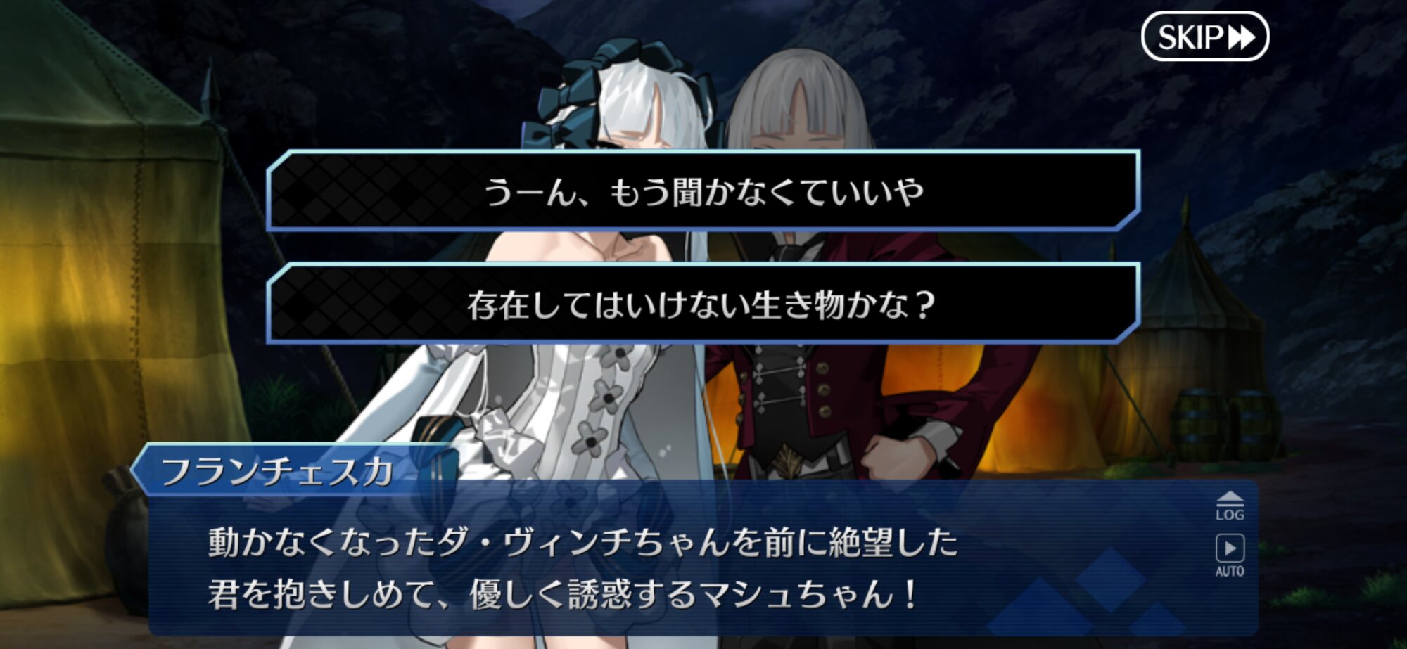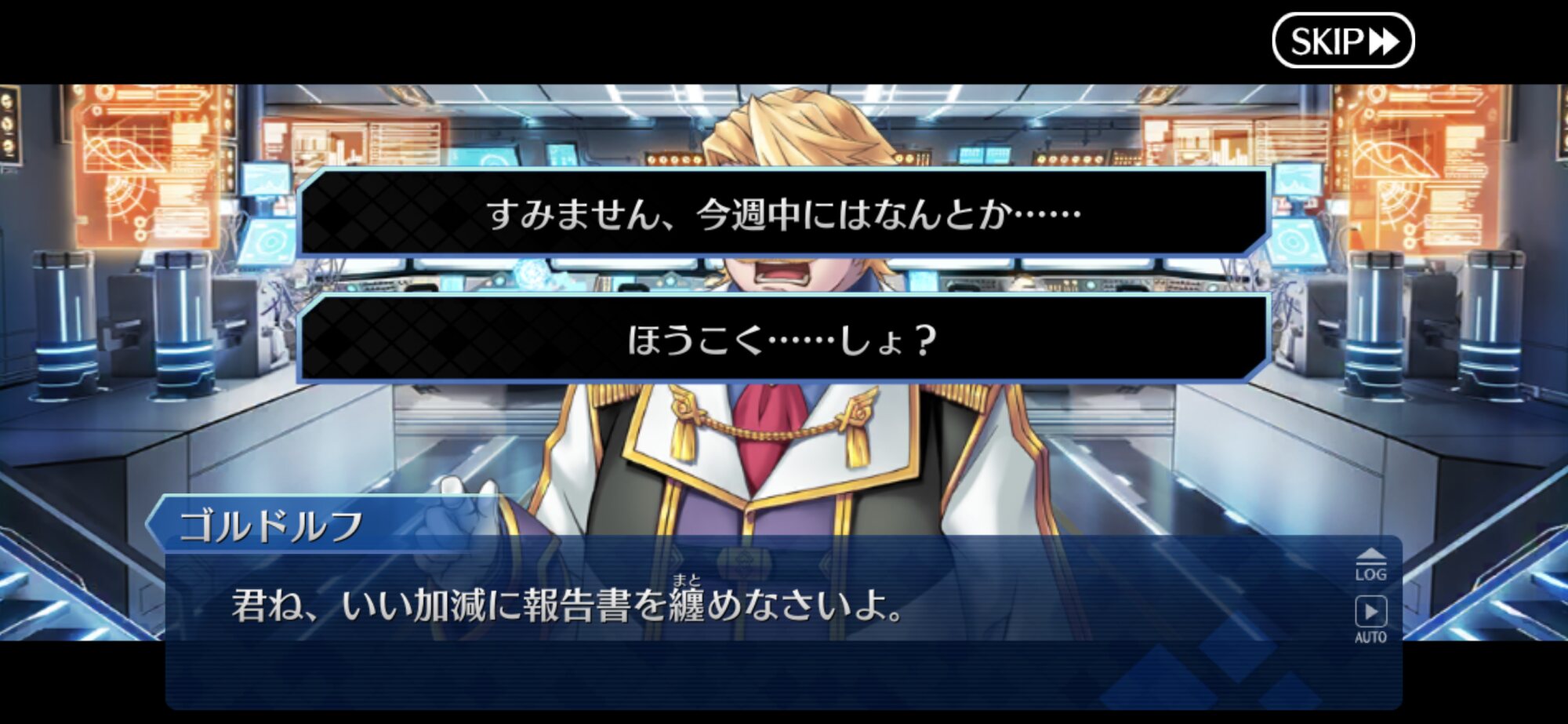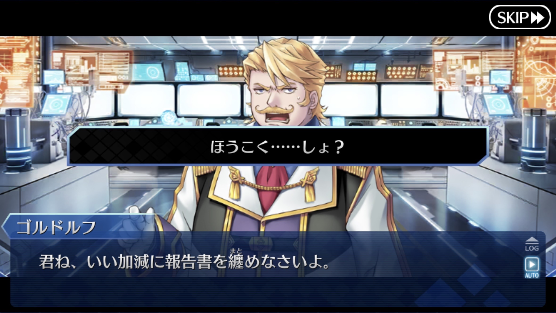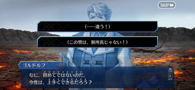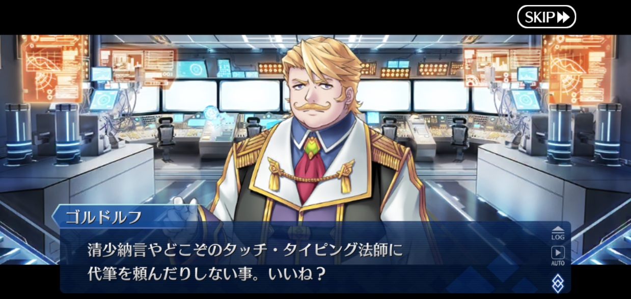 立ち絵のせいでいかにも後ろから覗き込んでますみたいな絵になってるなうん、ロマニじゃなくてゴッフ出したのはせめてもの良心…ではないな。プレラーティだし…