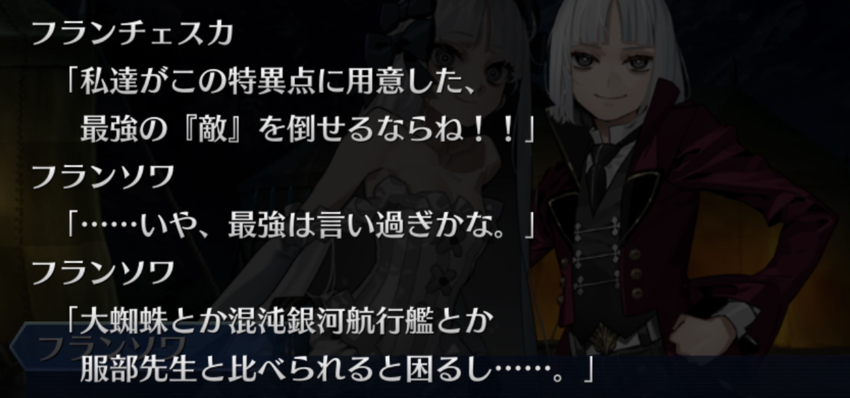 フランソワはアインツベルンといい使命に殉じる者にはそれなりに敬意を払うからな……>>60