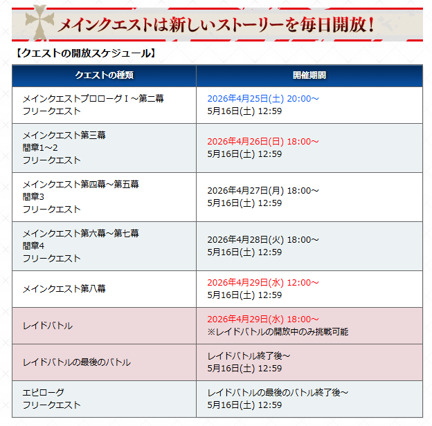 2026年4月25日(土)20:00~5月16日(土)12:59まで