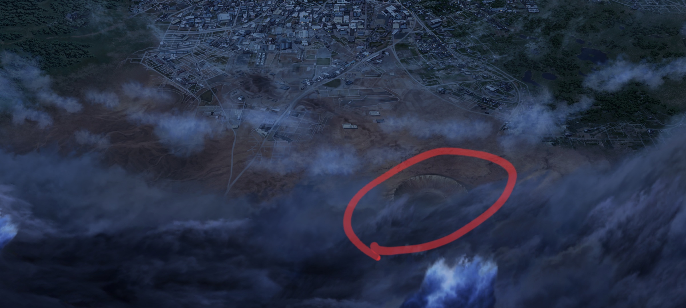 周囲を囲んでるのはグガランナの雲で、スノーフィールドがちょうど台風の目だとすると都市中央の雲っぽいのは何だ?