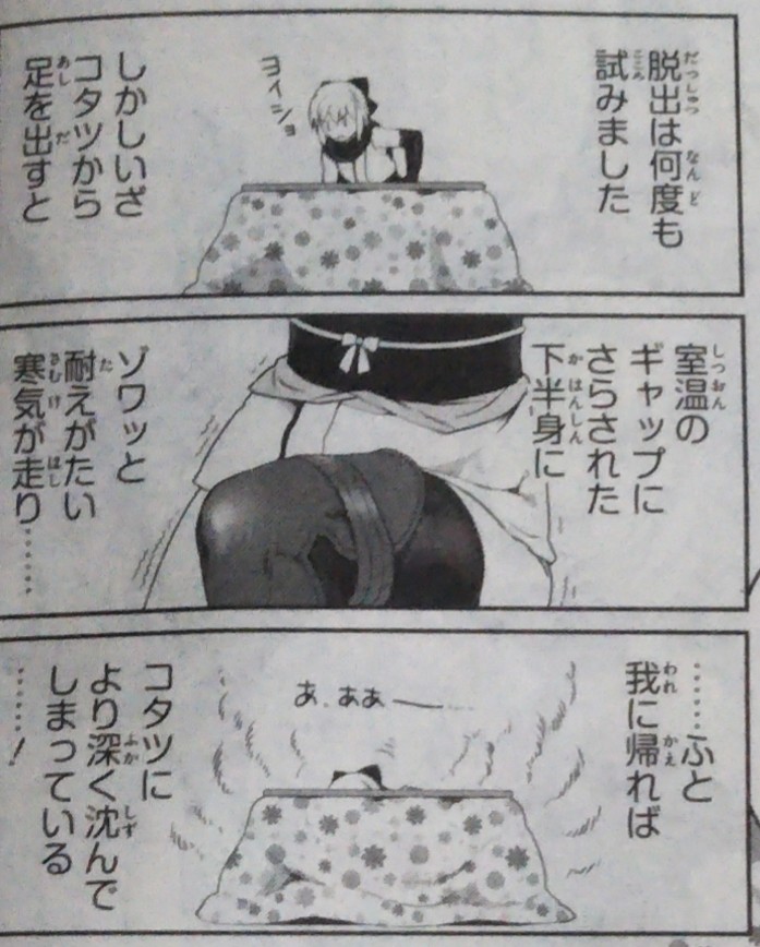 刑部姫が籠城でもしてるんだろうか?コタツの中に潜む溶岩トリオ……