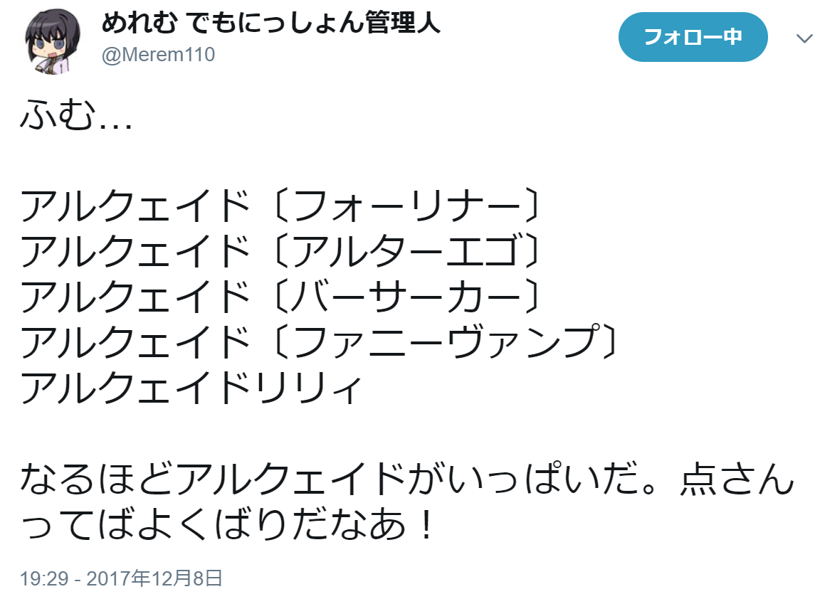 イラストレーターさんたち忙しいし、全鯖のコメントとか用意するのに時間かかってそうだよなぁ。冬コミ行かないから一般販売待ちなのがちょいと辛いが;道具作成EXは今のところパラケルススだけか