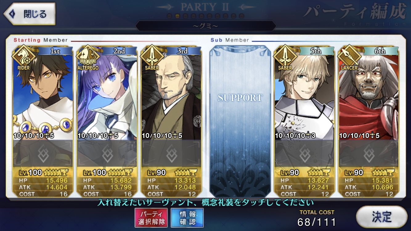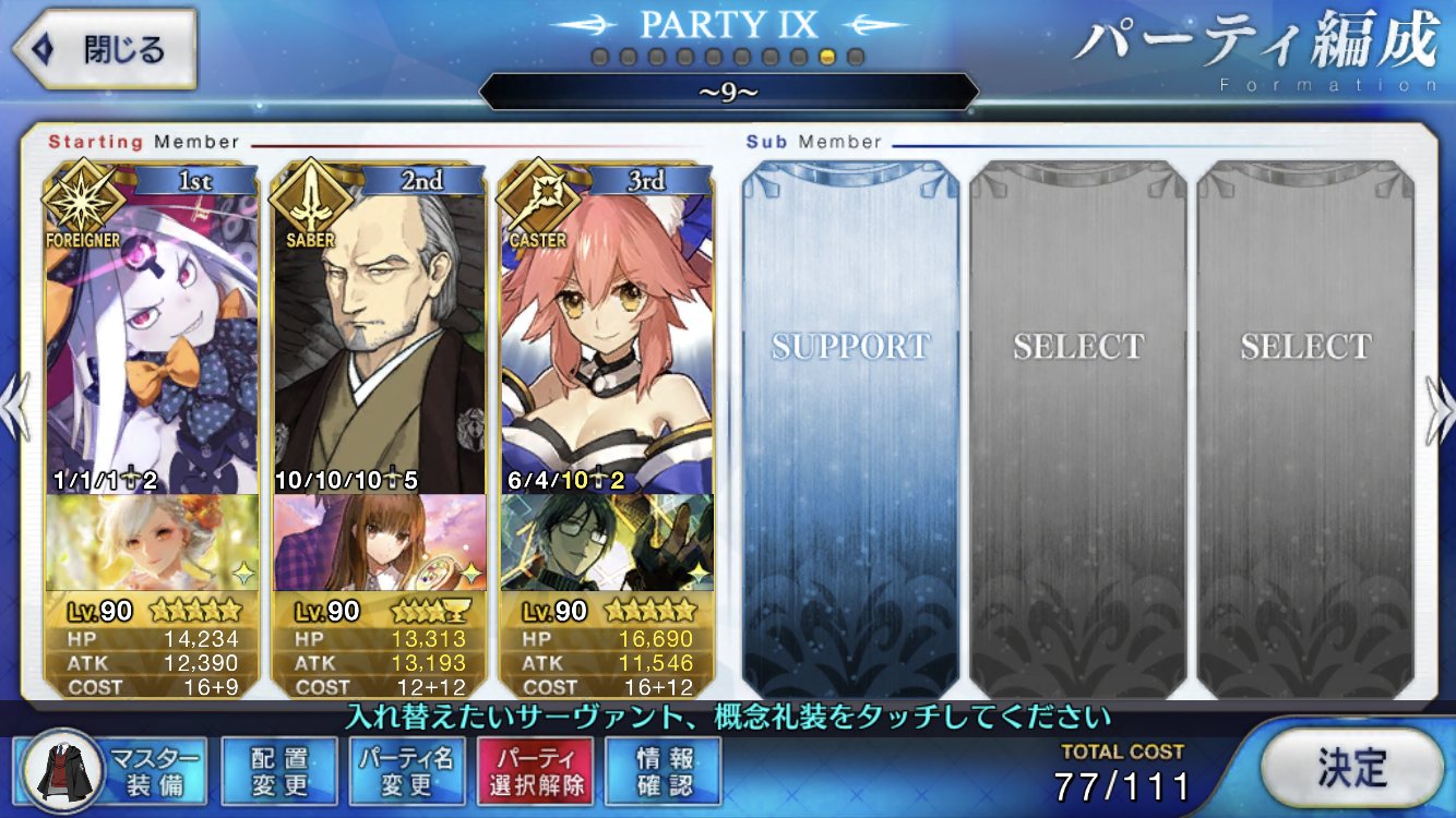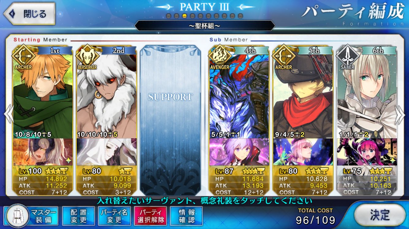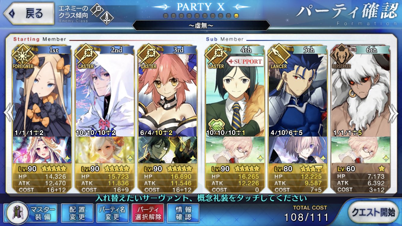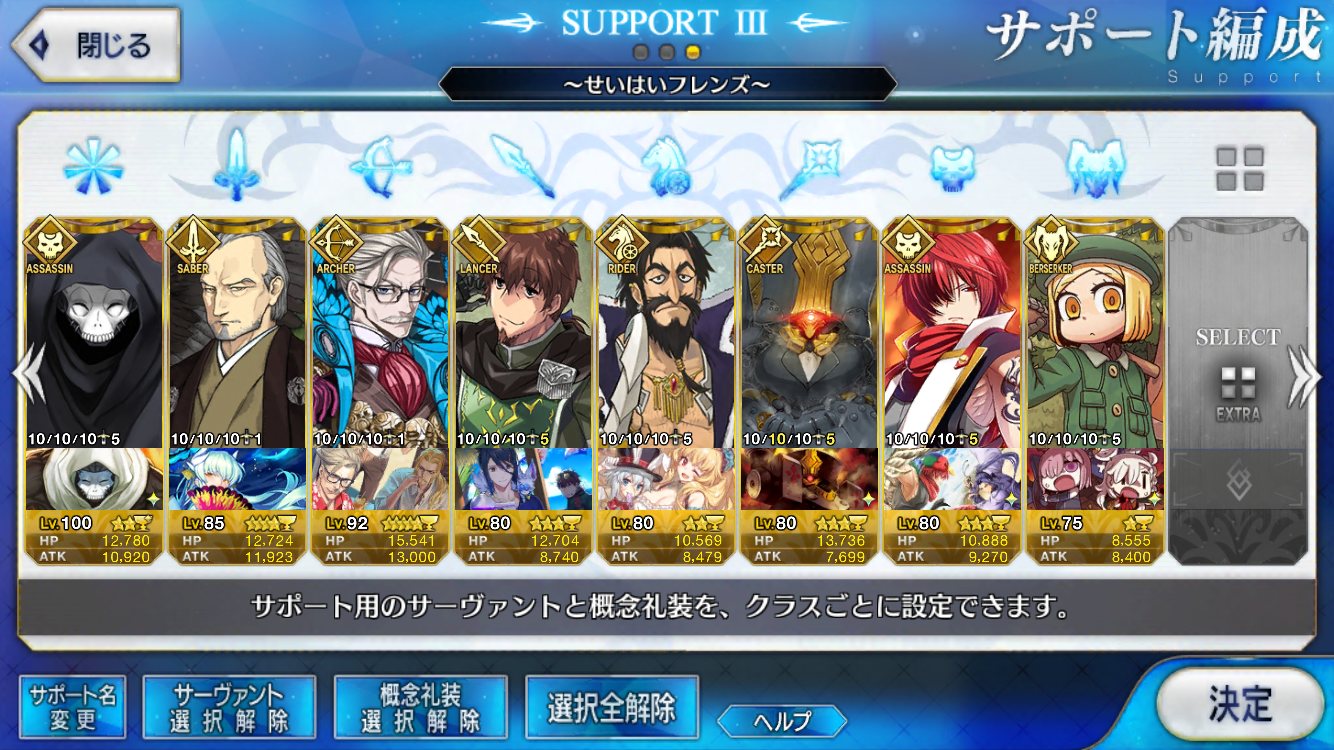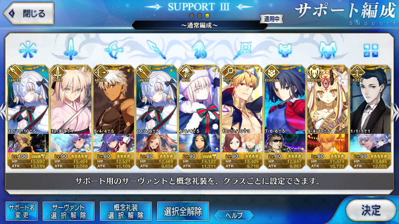 EXのセミ様とかBのアヴァケブロンもおるよね。裏を返せば合わせて4人しかFGO未参戦ということ。楽しみやね。クリスマスも近いけど来週には開催なのかな?サンタさんが気になるぜ