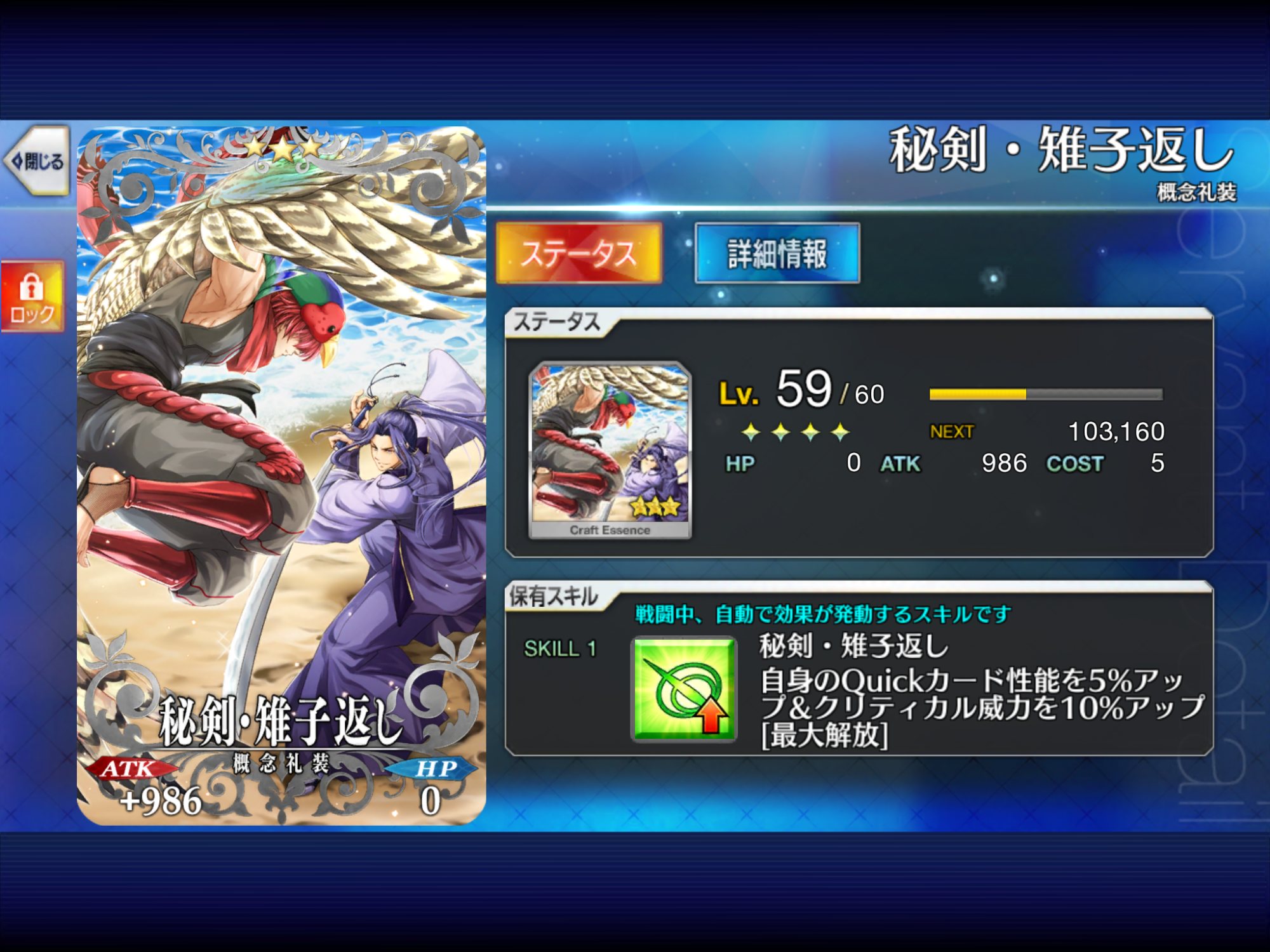 はえーこんなにたくさん100レベ礼装って作れるんか。まだ一個も完成してない…>>827
