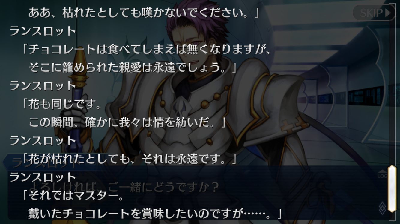 ランスロット卿は絆紡ぐの大好きな人間だからね。こんなん言われたら一緒に食べるしかないじゃん…今度発売されるマテリアルの円卓の騎士のところで騎士のコメントのある未実装の円卓の騎士はわりと実装の可能性は高そう。