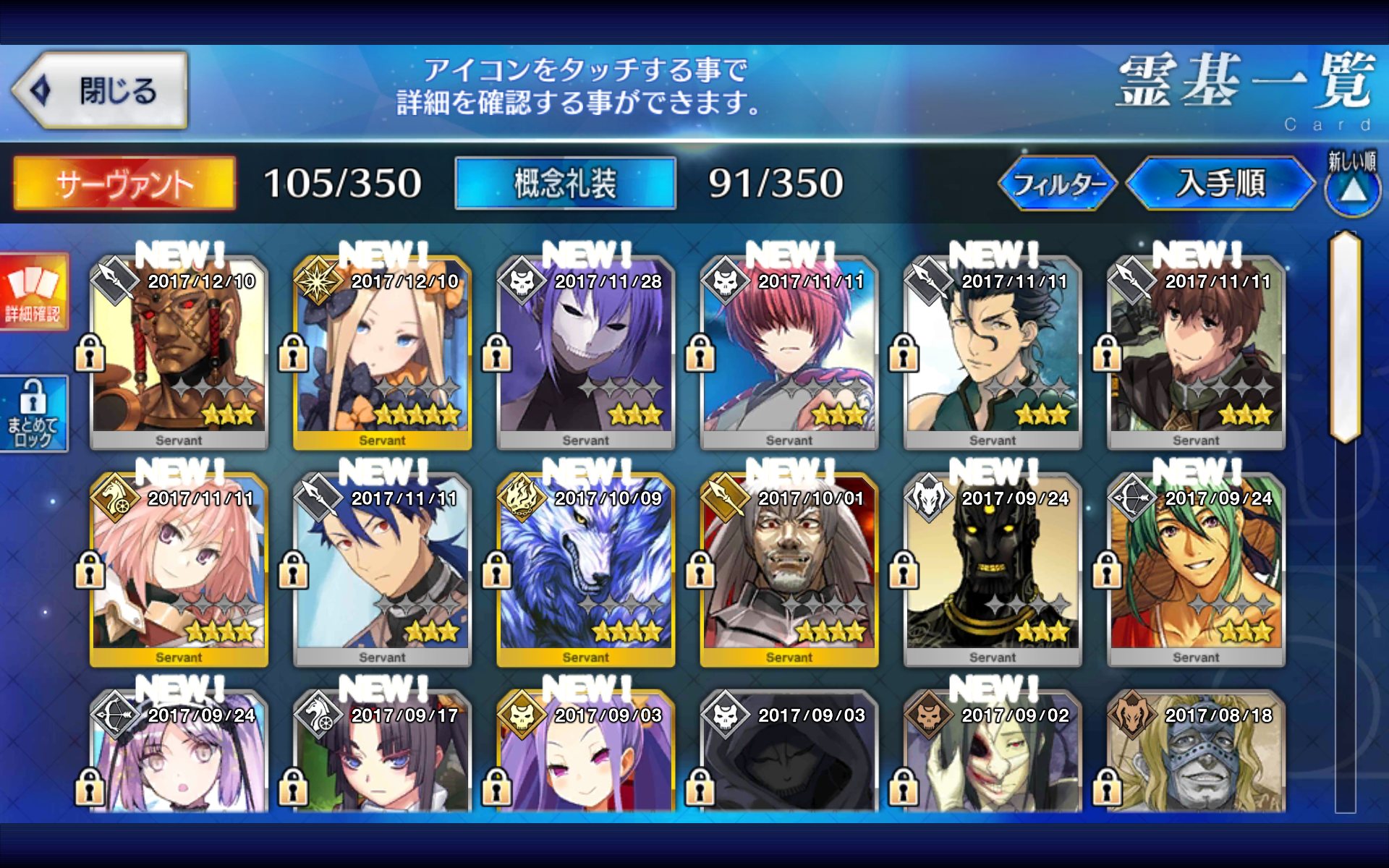 個人的には星4が来てくれたら「次もイけるかな?」とは思うけど、星5が来てくれたら「あ、しばらくは礼装も含めて来ないな」って思う。あーあ!クリスマスイベでティアマトリリィこないかなぁー!(唐突)