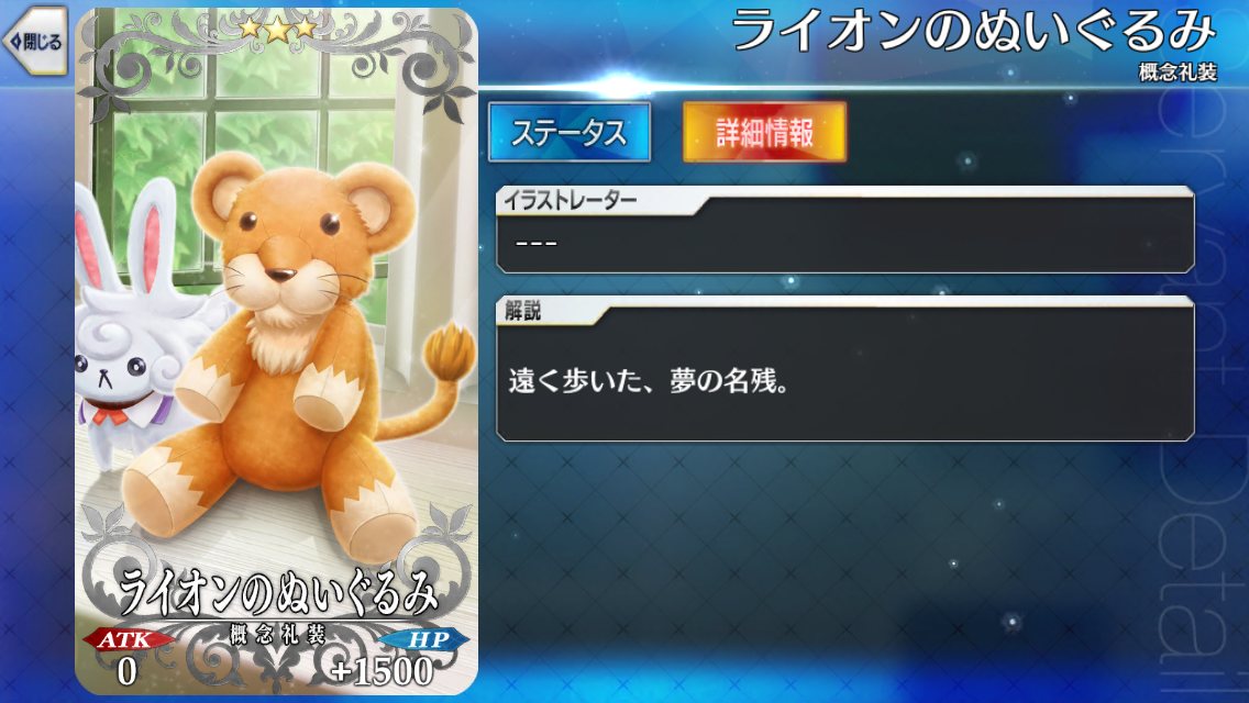 持ってたら明治維新のノッブ、テキストも含めてならキャスターさんの絆礼装が入る。>>944
