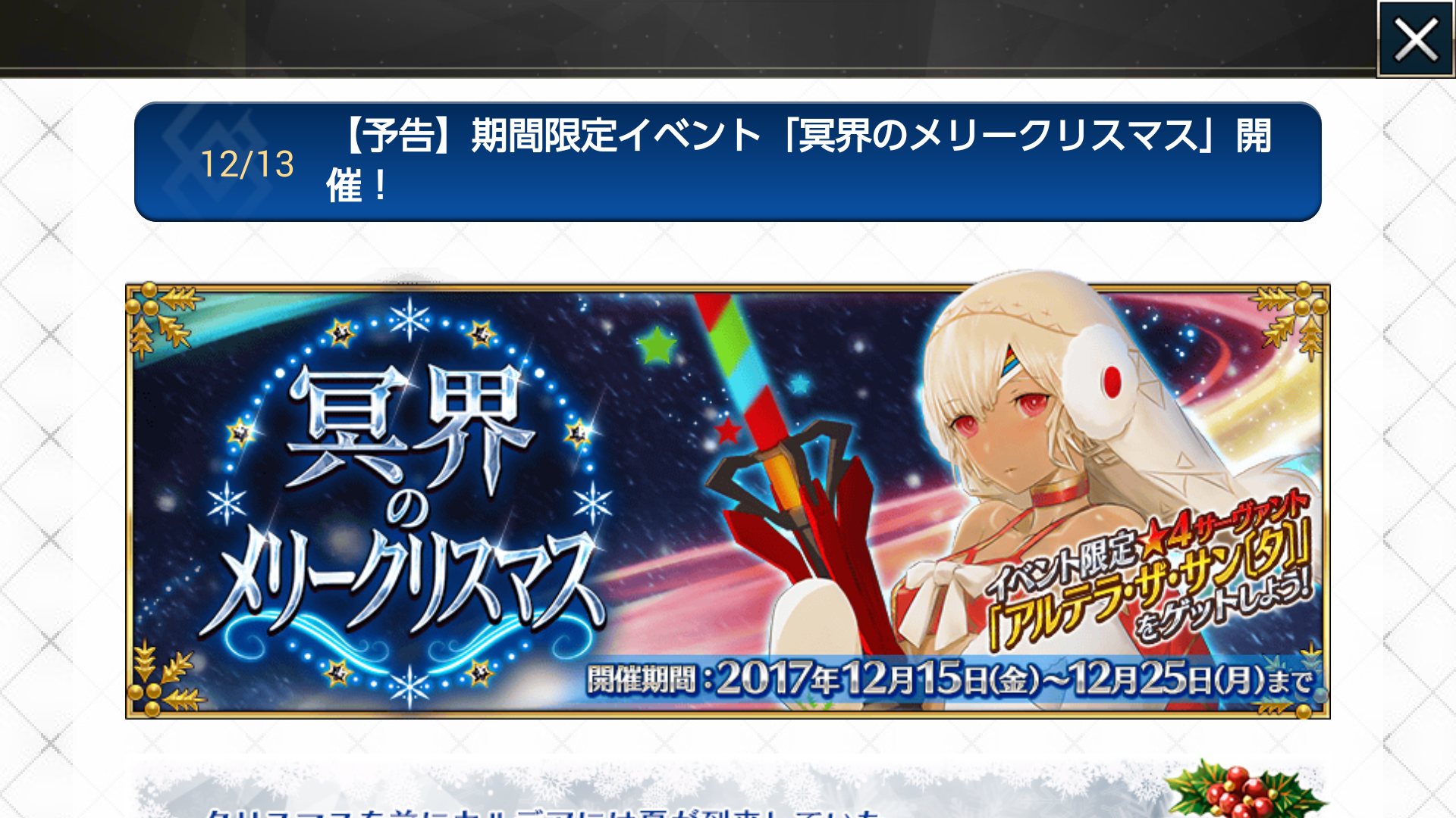 いやぁ、マイルームの滑り台は楽しかったですねぇ(何かに掴まれる音)そういえば表の記事で真名について出てるけど、結局のところ年明けから解禁でいいのかな…?