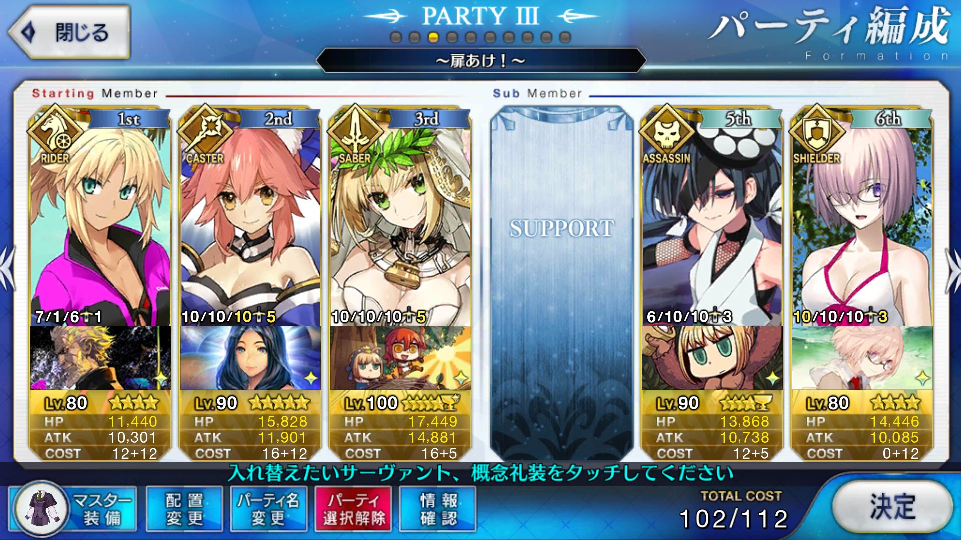 聖杯に手出さない、スキルマする対象の星5がそもそもサポートを埋めれるほどいる、レベル130前後