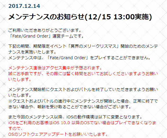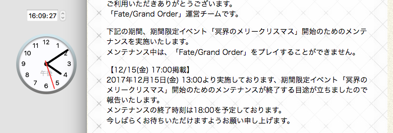 今日は13時からメンテです