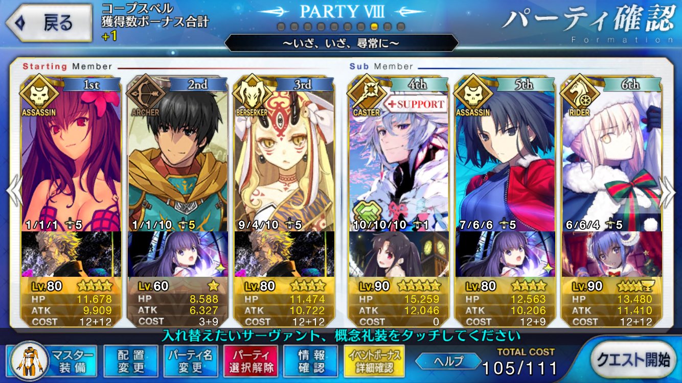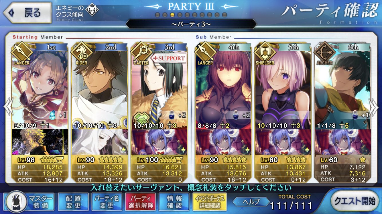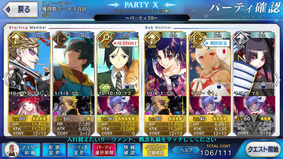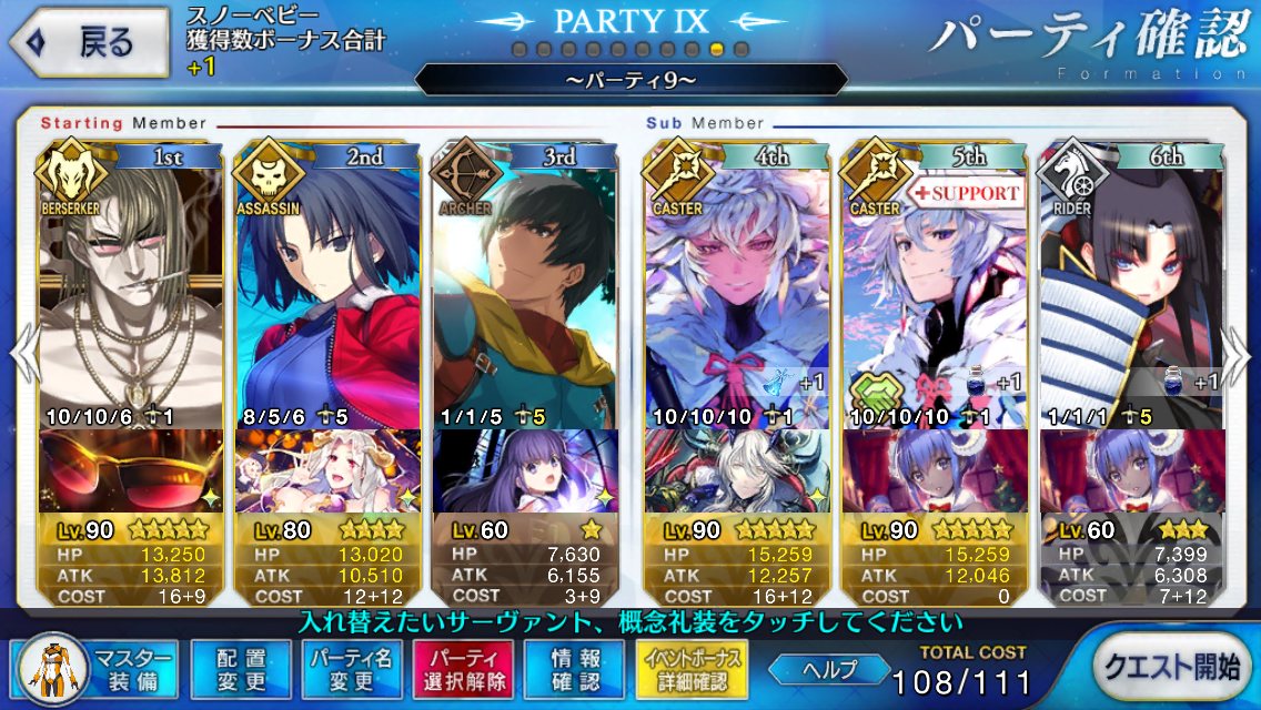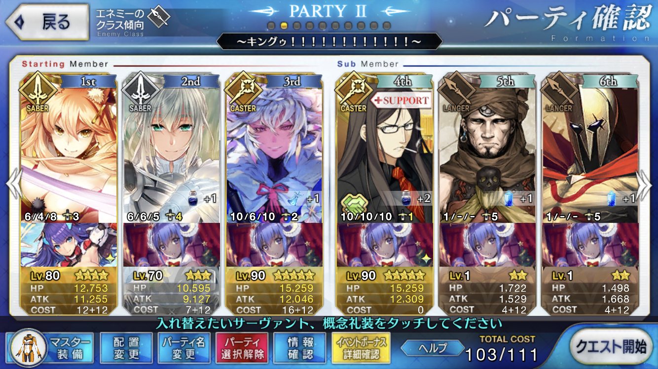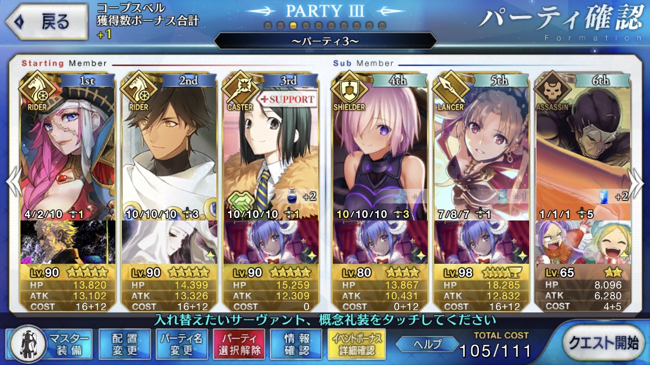 ラカムの登場と活躍を待ってる人間も居るでこのスレチは終了でおk静謐礼装自前3、助っ人1を上回る編成が組めない