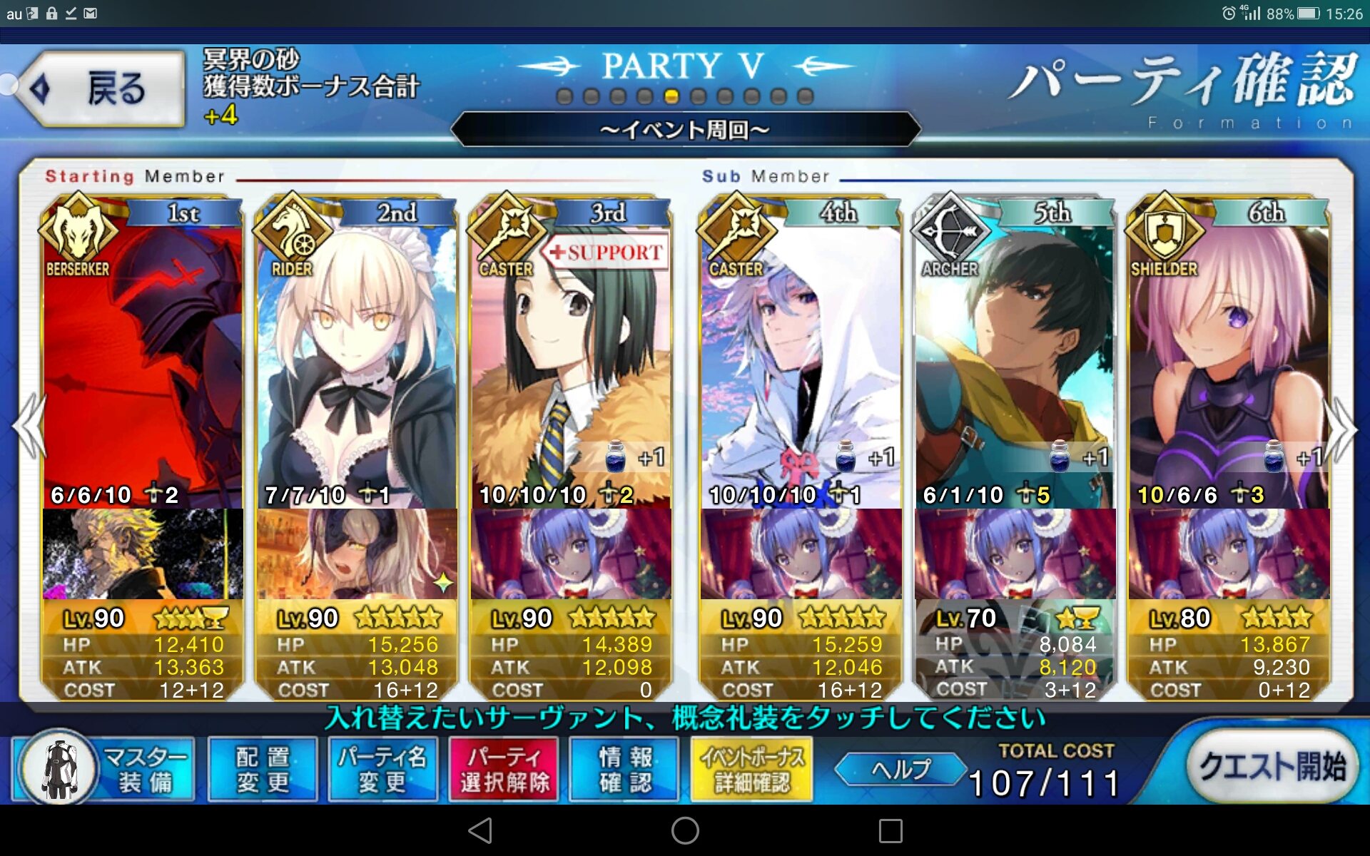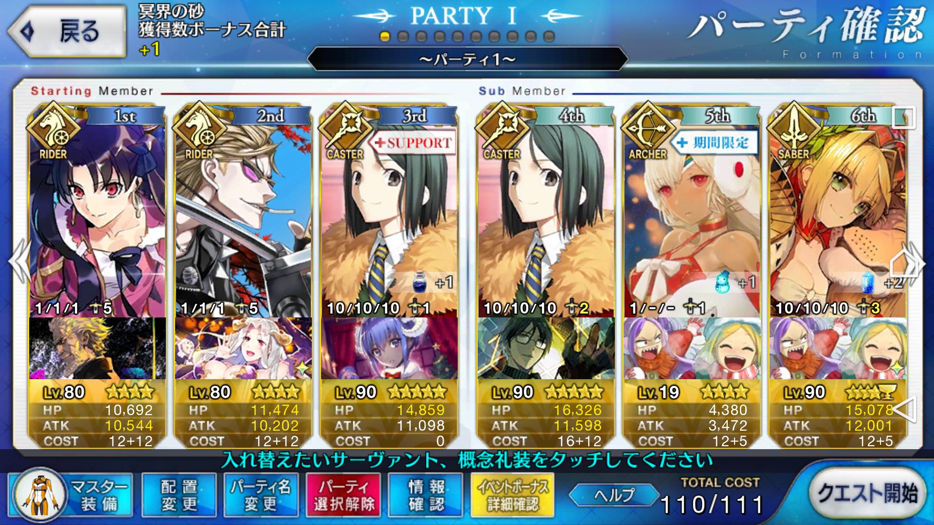 PTは砂礼装あるだけ使ってるので、第1で3-5T、第2で5-7Tとかなので、時間効率はそんなでも無いですわ……