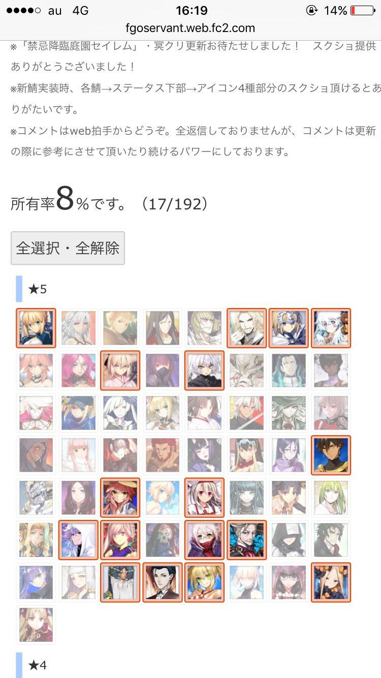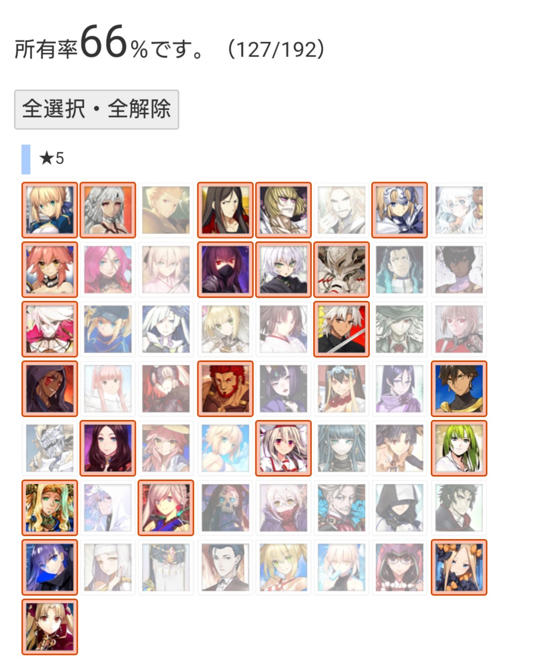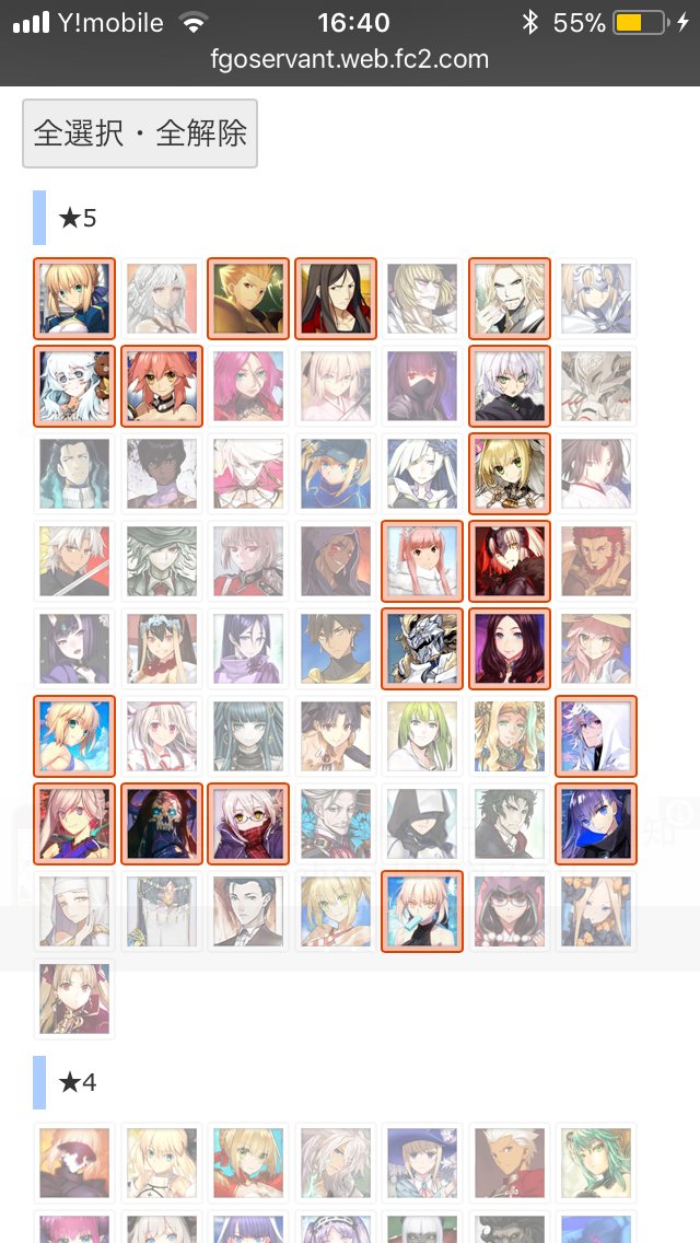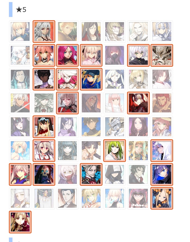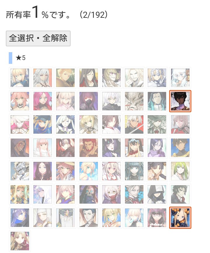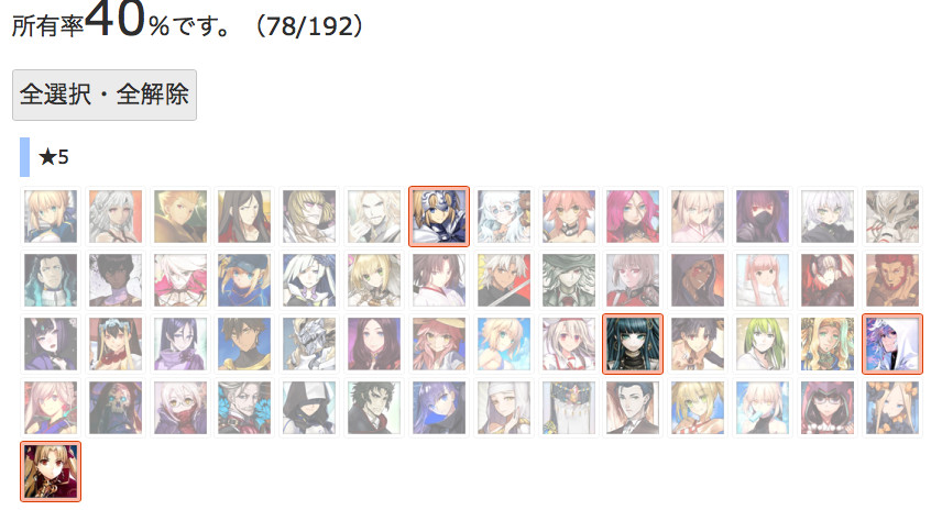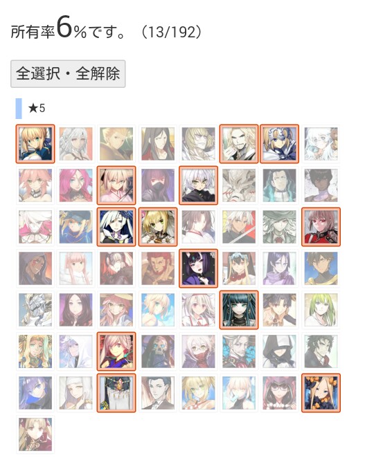 マテリアルの霊基一覧が全鯖分埋まってるなら