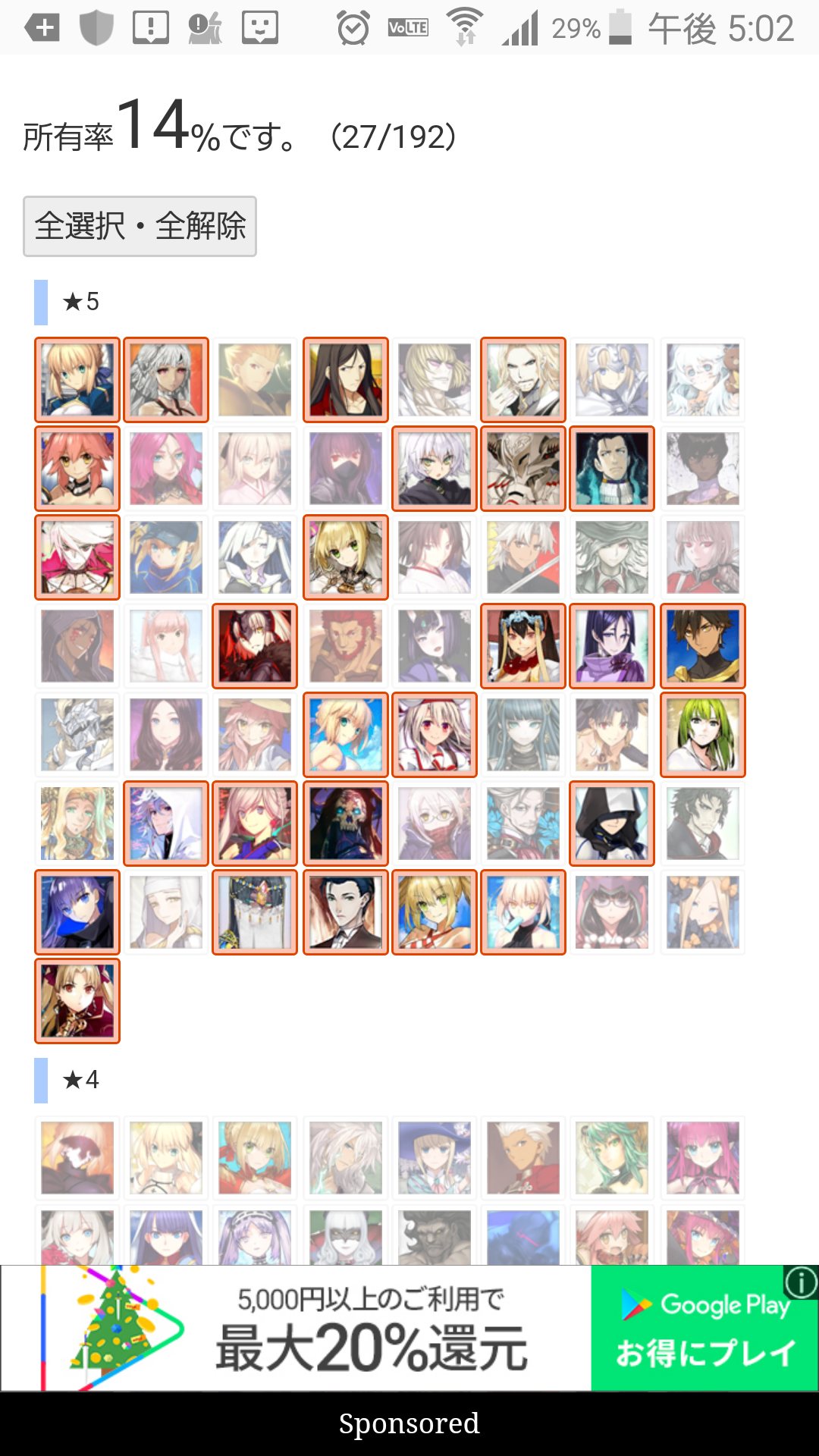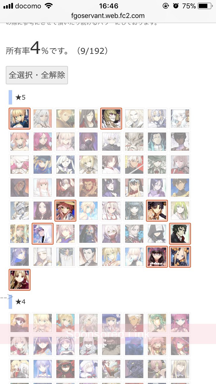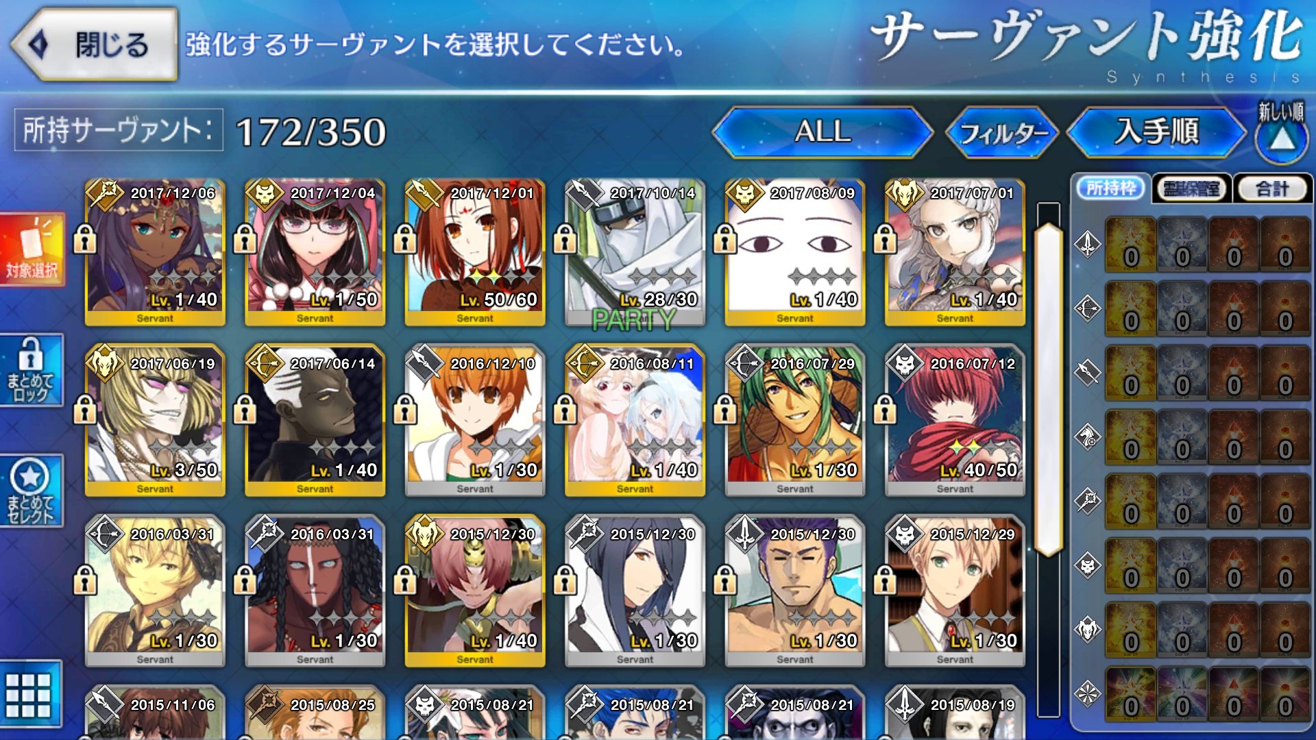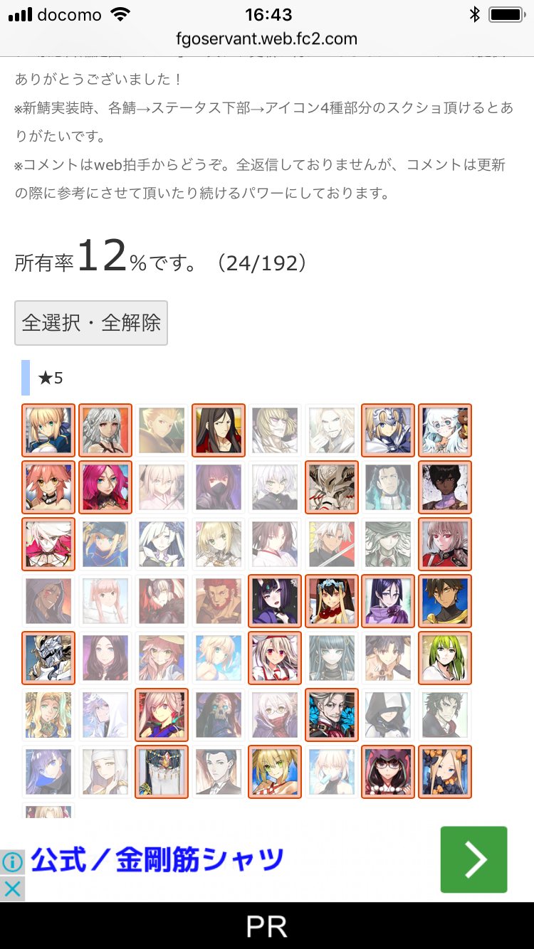 マテリアルの霊基一覧が全鯖分埋まってるなら