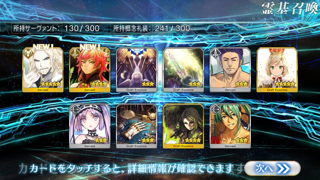 狙い目のキャラが今回は絶対来ないと思ったら引かぬが吉。欲しい鯖は星5よりもむしろ星4に偏ってる