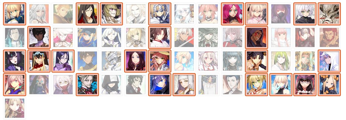未契約とクラス別フィルターで、疑似的な未召喚鯖一覧が作れるよここら辺でそろそろ天草をお迎えして