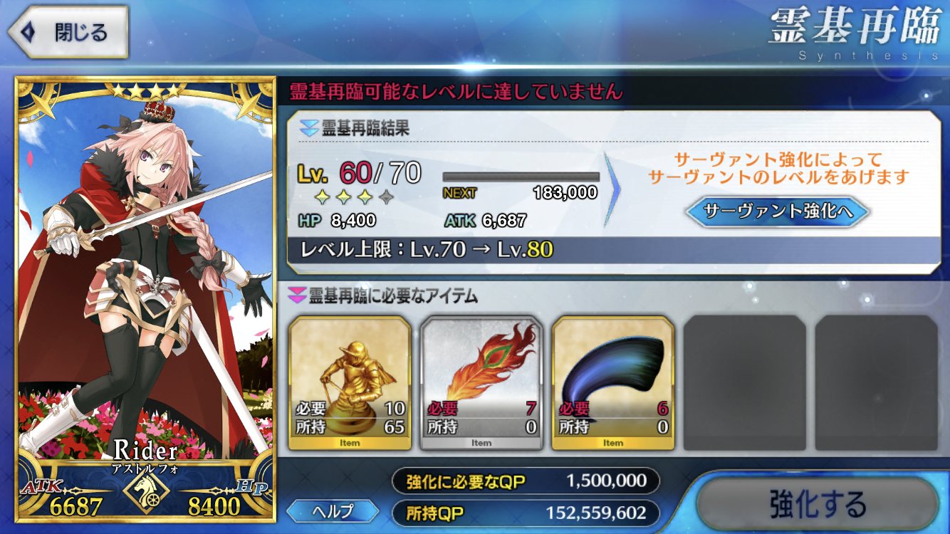SSRアルクェイドをフォウマスキルマレベル100にする、宝具凸?あれはガーチャーのみに許された所業だよ>>961