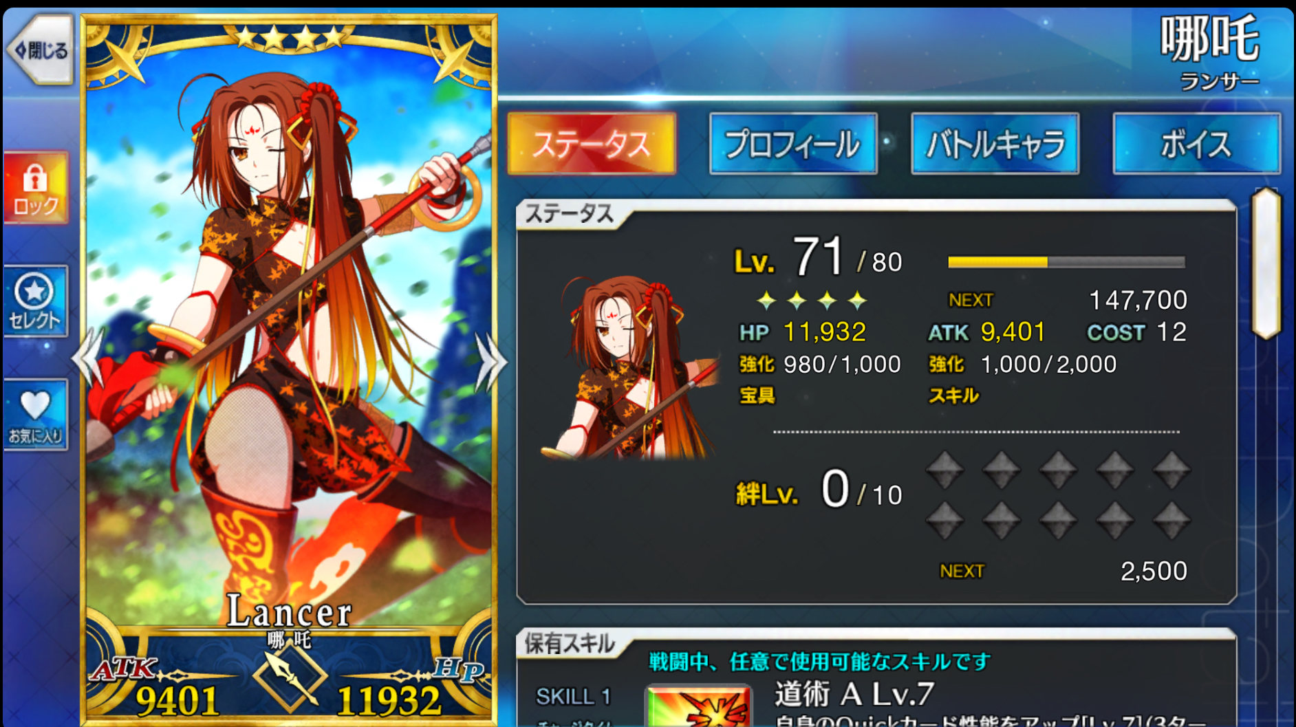 モッチーモッチー……うん、よくぞ聞いてくださいました! やっぱりまずはあの二の腕!! モチモチの肌に程よい筋肉! サラサラで二つに結んだ髪の毛もあるとたまらないわ! あ、それと引き締まった太ももに顎の下から太ももにかけてのライン! これも断然外せないわ、ええ!☆5の全体剣一人も育ってないから誰か来て欲しいな…