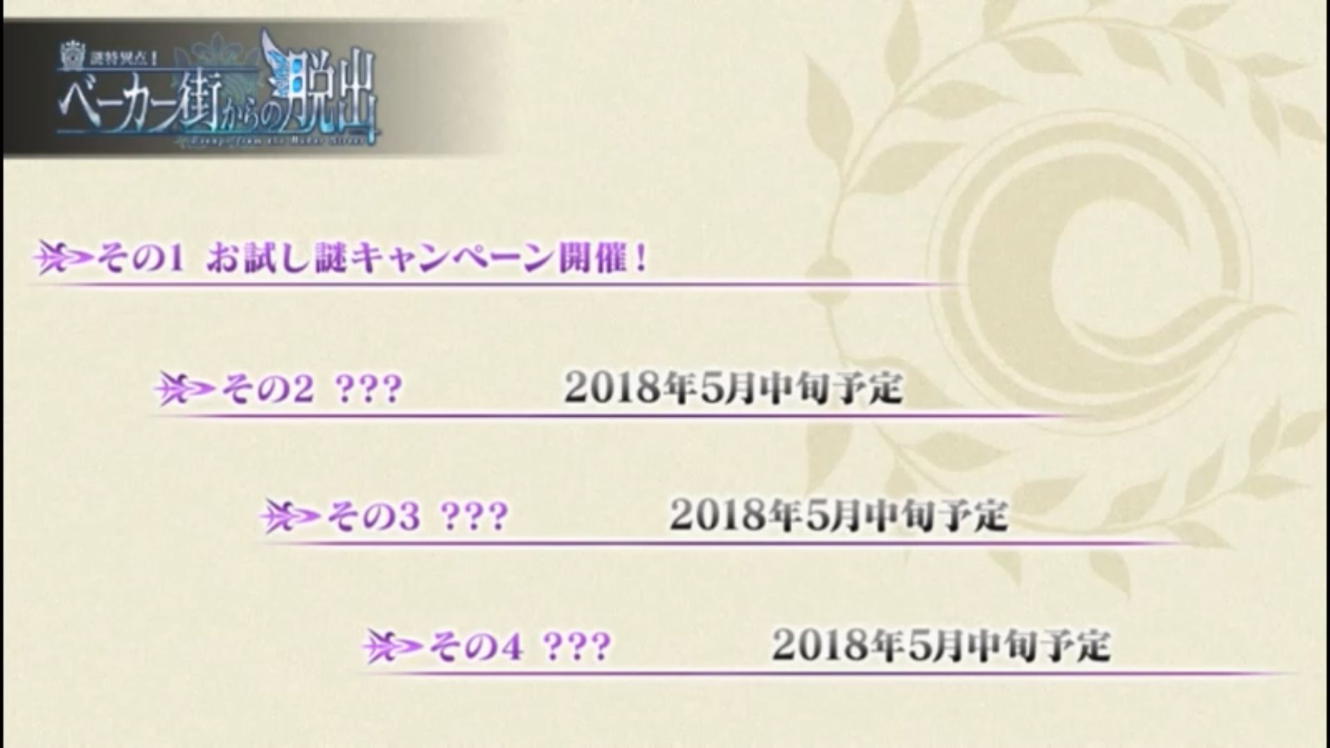 いやエイプリルフールにこだわりすぎて本編遅れましたのほうが辛いから良いんだけども再来週(来週)か。合間に二部開始直前キャンペーン開くと見た