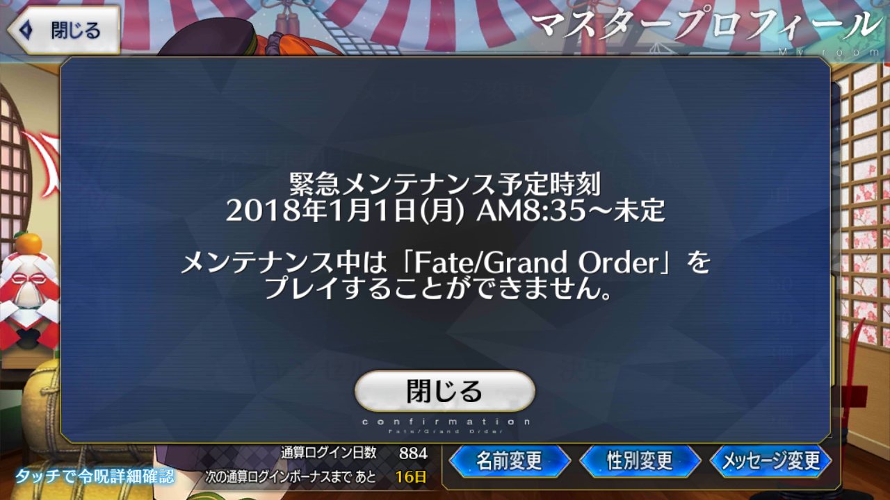 APが満タンになったので周回しようとしたとたんにメンテになった