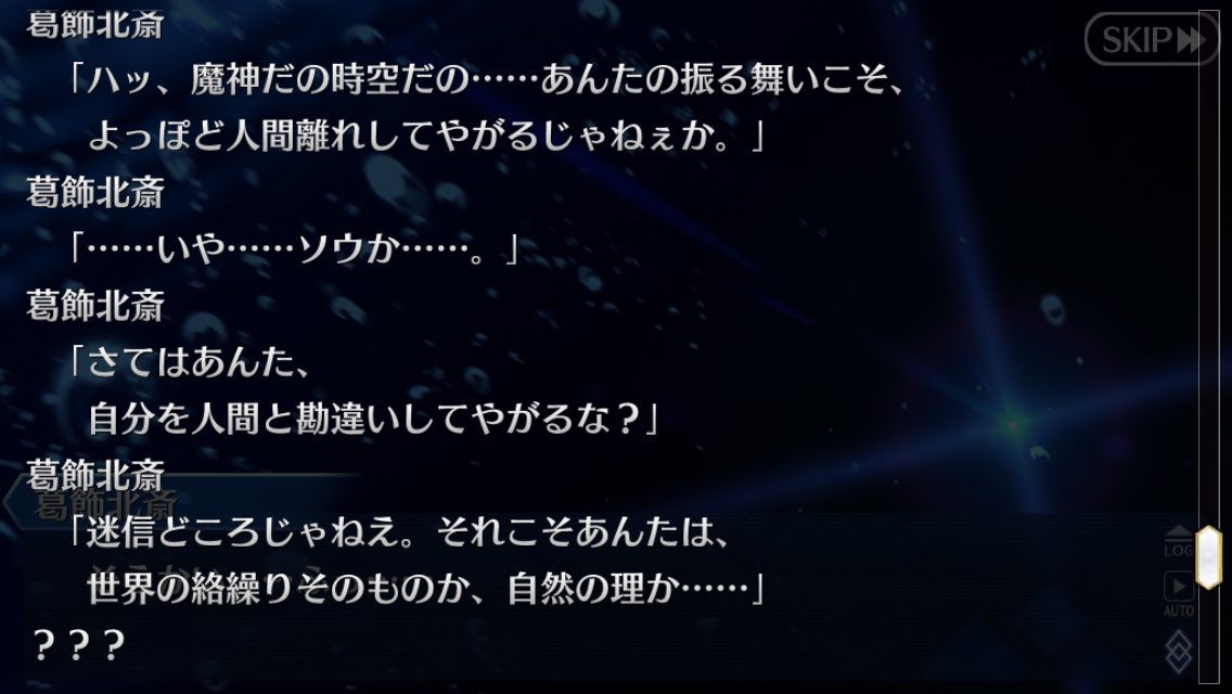 「異なる、星の神」と「異なる星の、神」と、句切る場所で何を指すのか意味も変わりそうだよねそういや北斎体験クエで時系列がよく分からんが事になってるのって後で説明されるのかしら