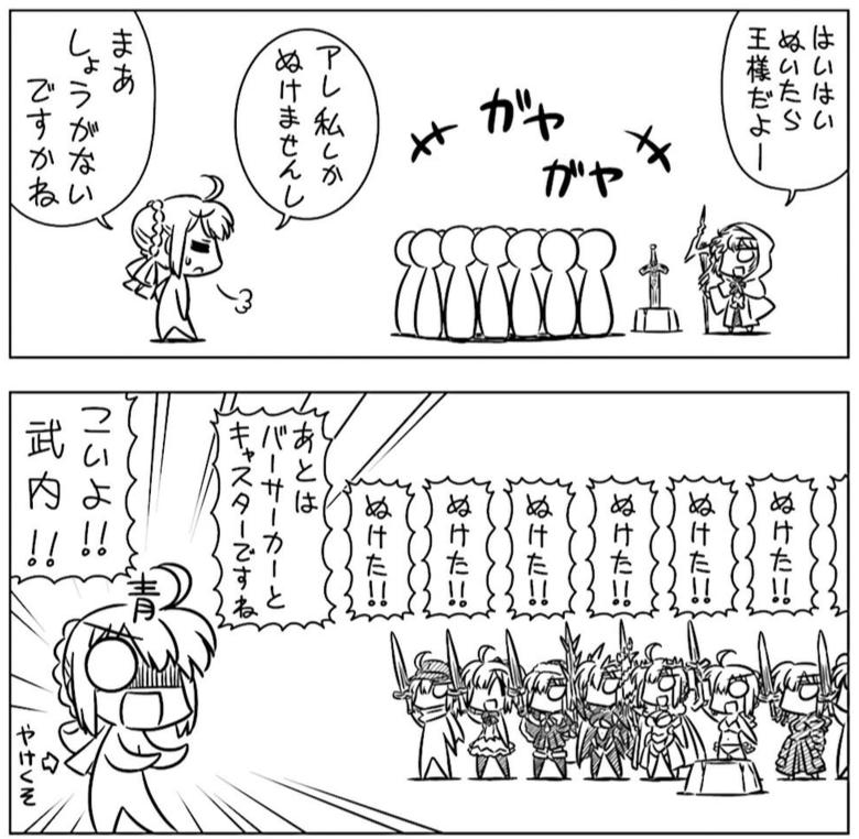 ぺぺさんのアーチャー、デイビットのバーサーカーは分からなかった(雷バックでよく見えない2体?)セイバーライダーは逆かも