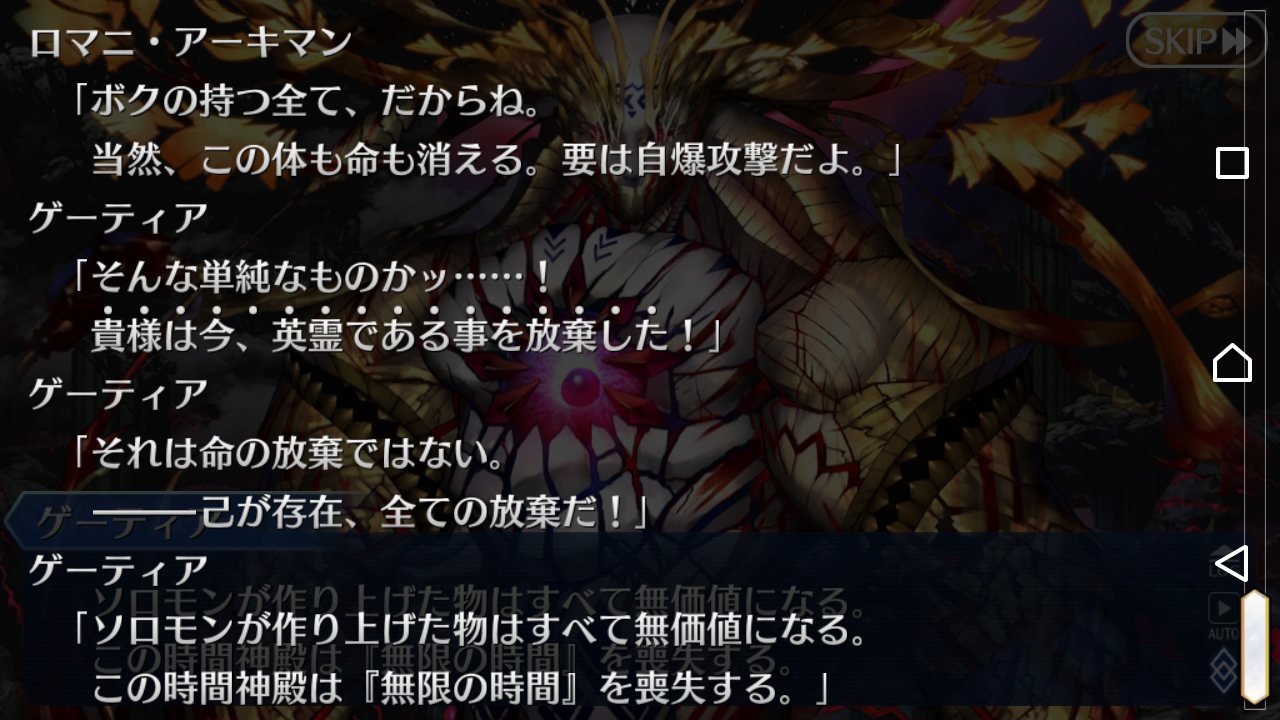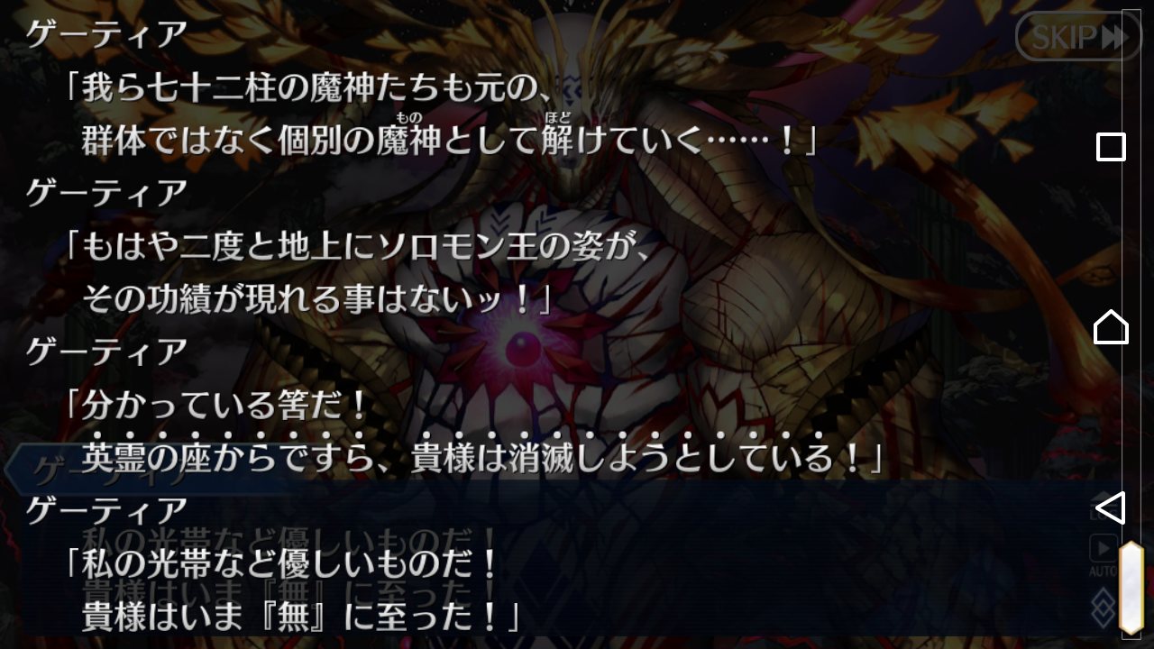 彼はゲーティアが新生して、ロマニの空いた霊基枠に収まったソロモンとかの方がありそうと言うか、あの時と同じ!なんて主人公に激励しているなら汎人類史のあのゲーティア本人だと思うなぁ…あ、違うわ