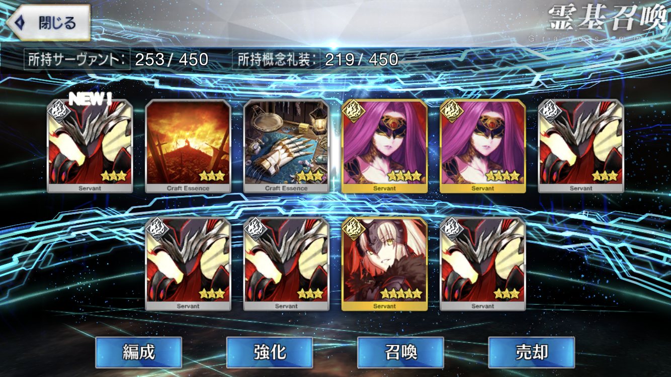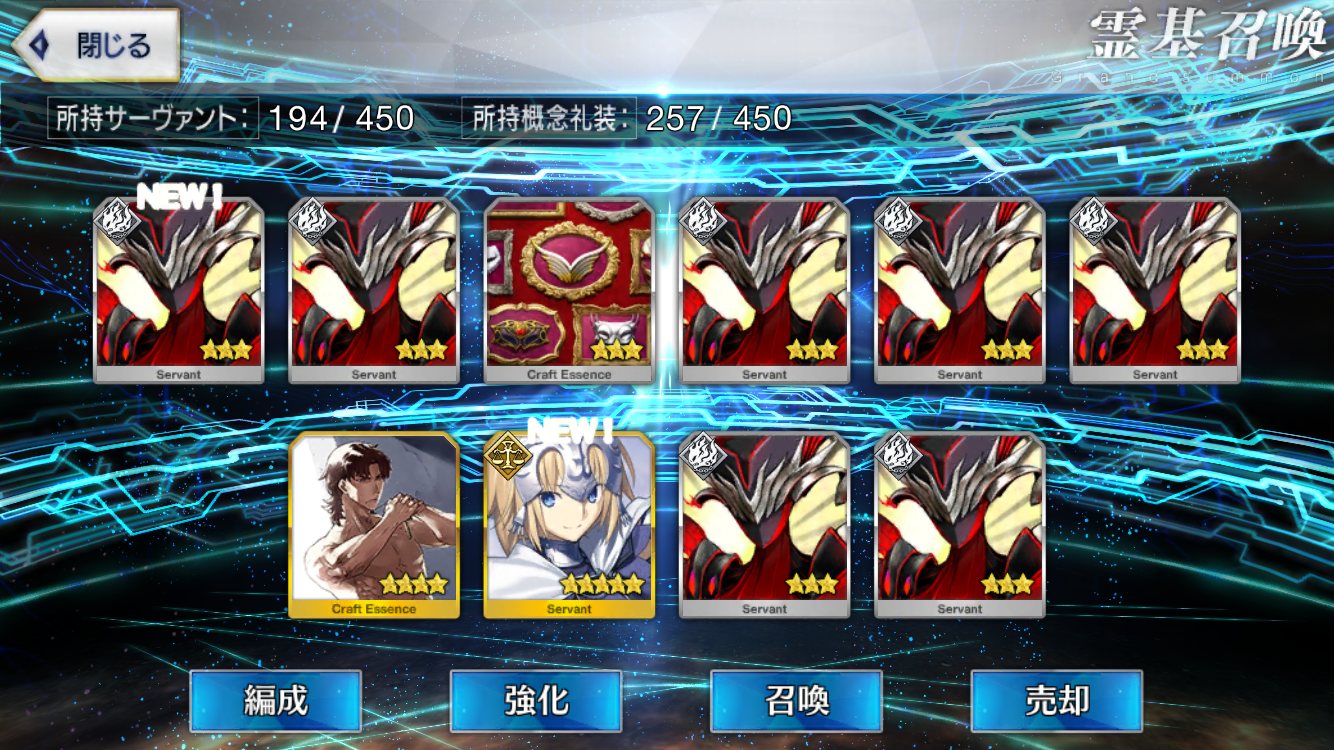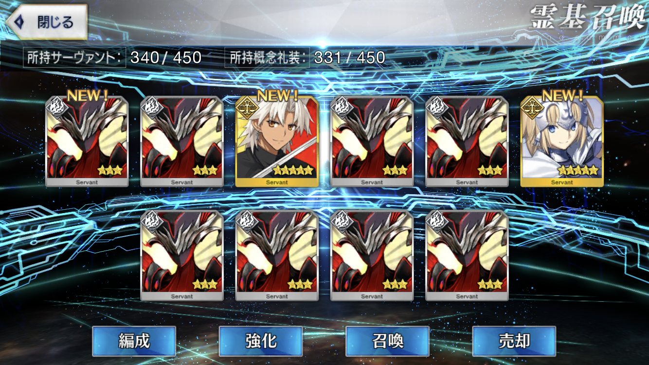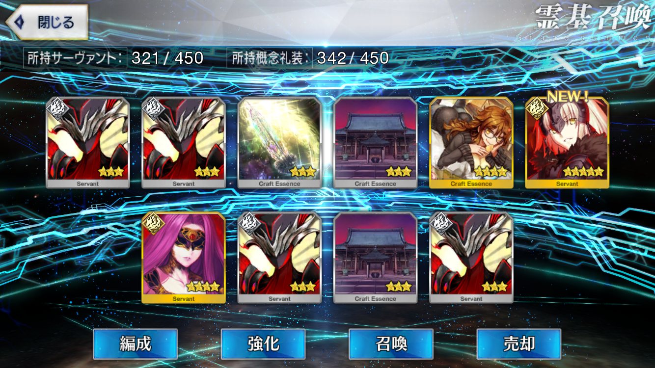 ラスト10連も最高の結果でしたみんな、10連でジャンヌオルタが来たからって余った石を全て他のピックアップに注ぎ込むのはやめとけよ。イベント礼装の入手を忘れるな。