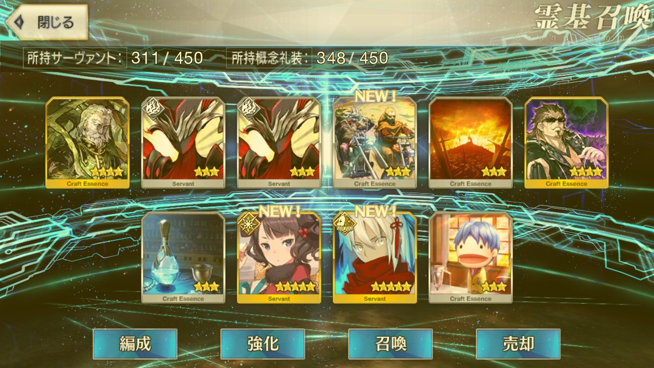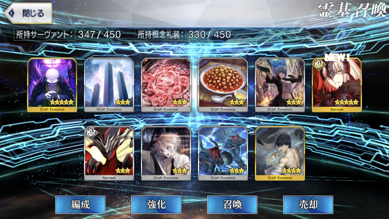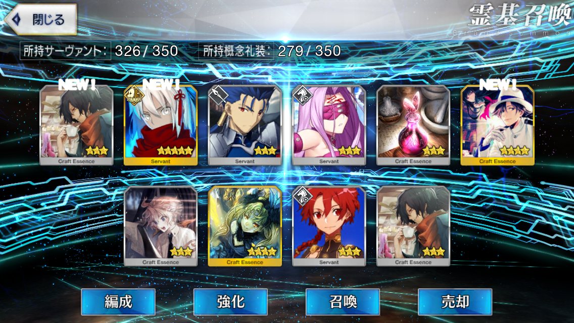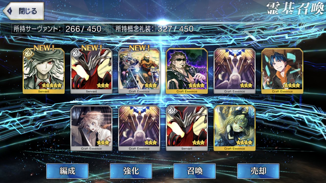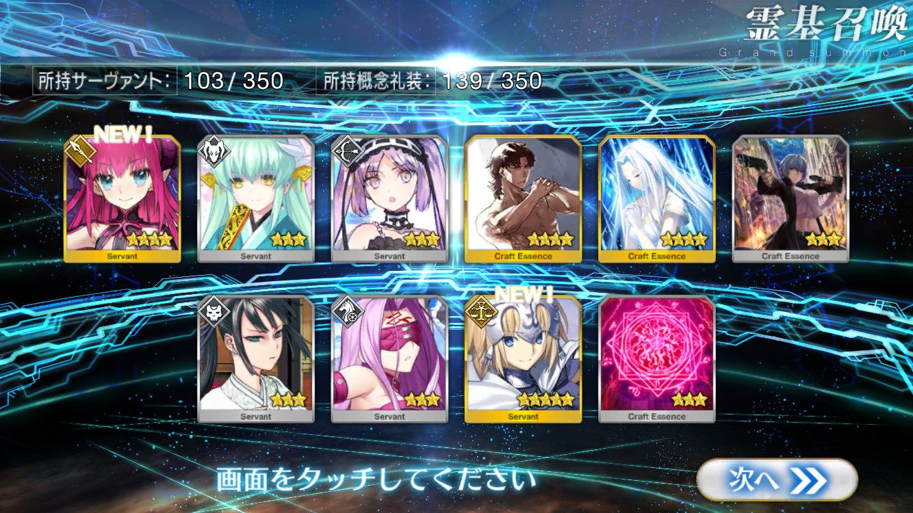 ラスト10連も最高の結果でしたみんな、10連でジャンヌオルタが来たからって余った石を全て他のピックアップに注ぎ込むのはやめとけよ。イベント礼装の入手を忘れるな。