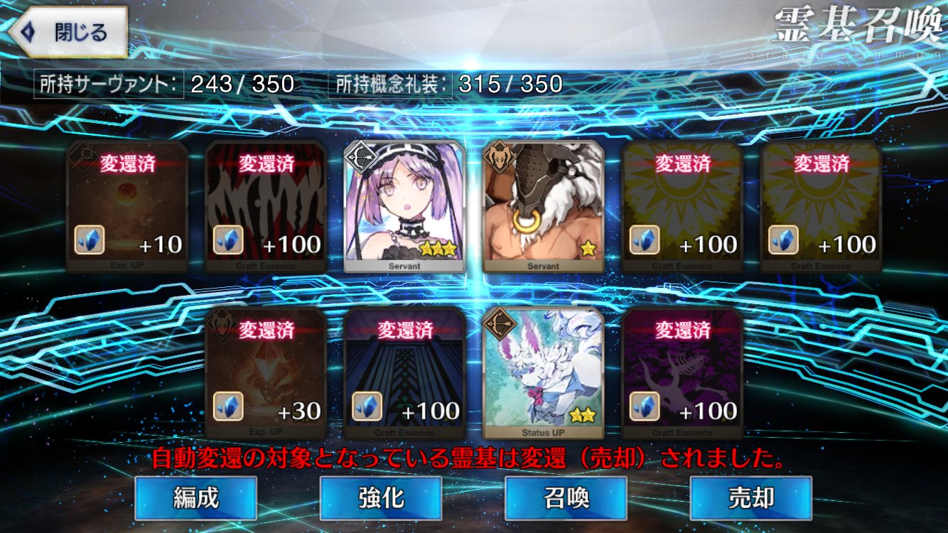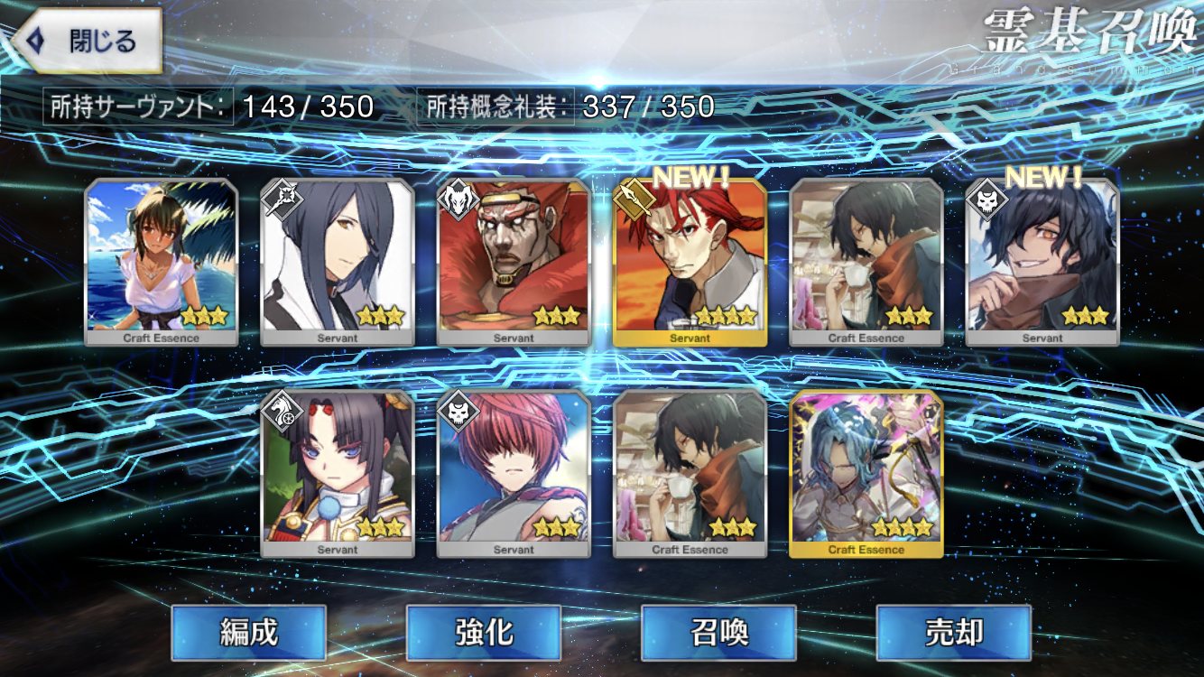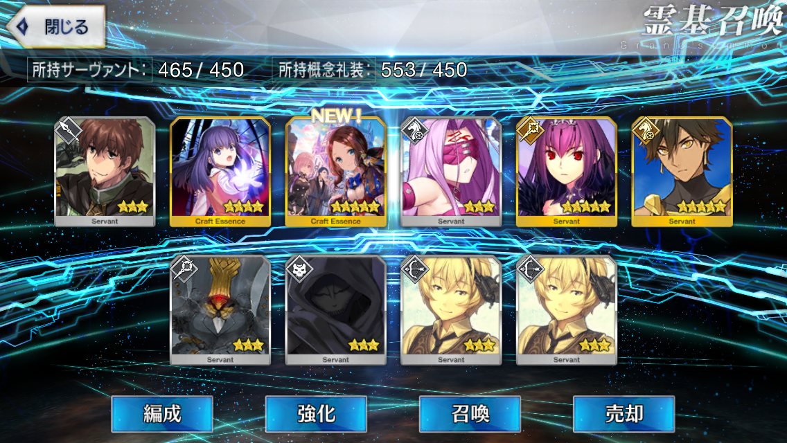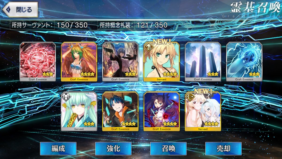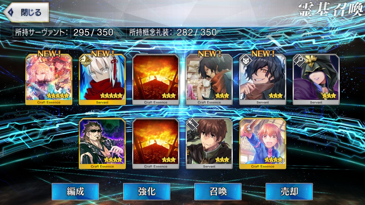 ラスト10連も最高の結果でしたみんな、10連でジャンヌオルタが来たからって余った石を全て他のピックアップに注ぎ込むのはやめとけよ。イベント礼装の入手を忘れるな。