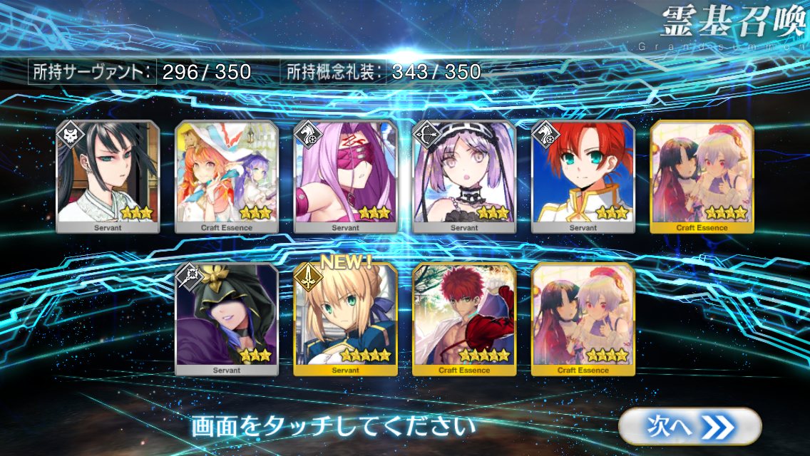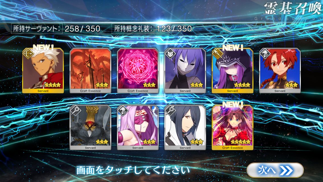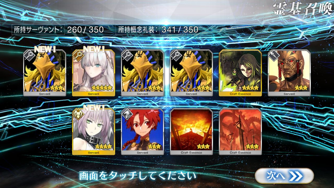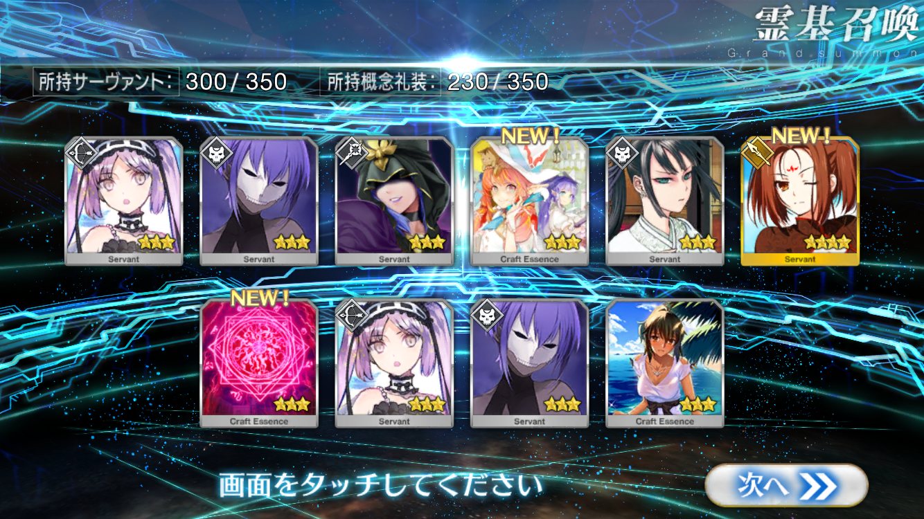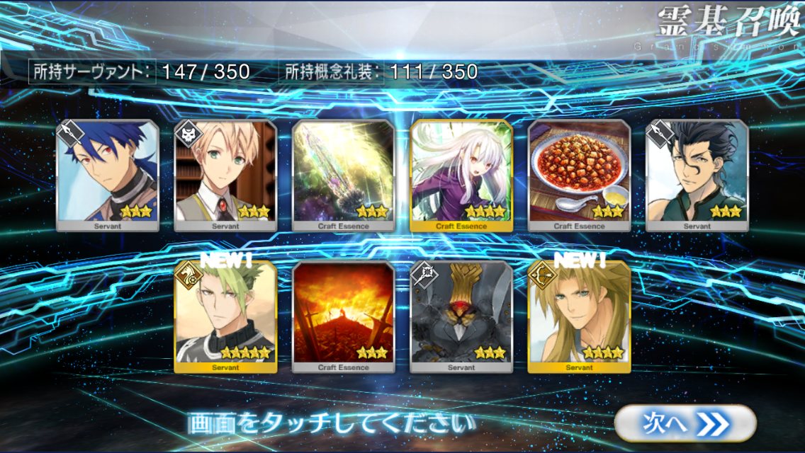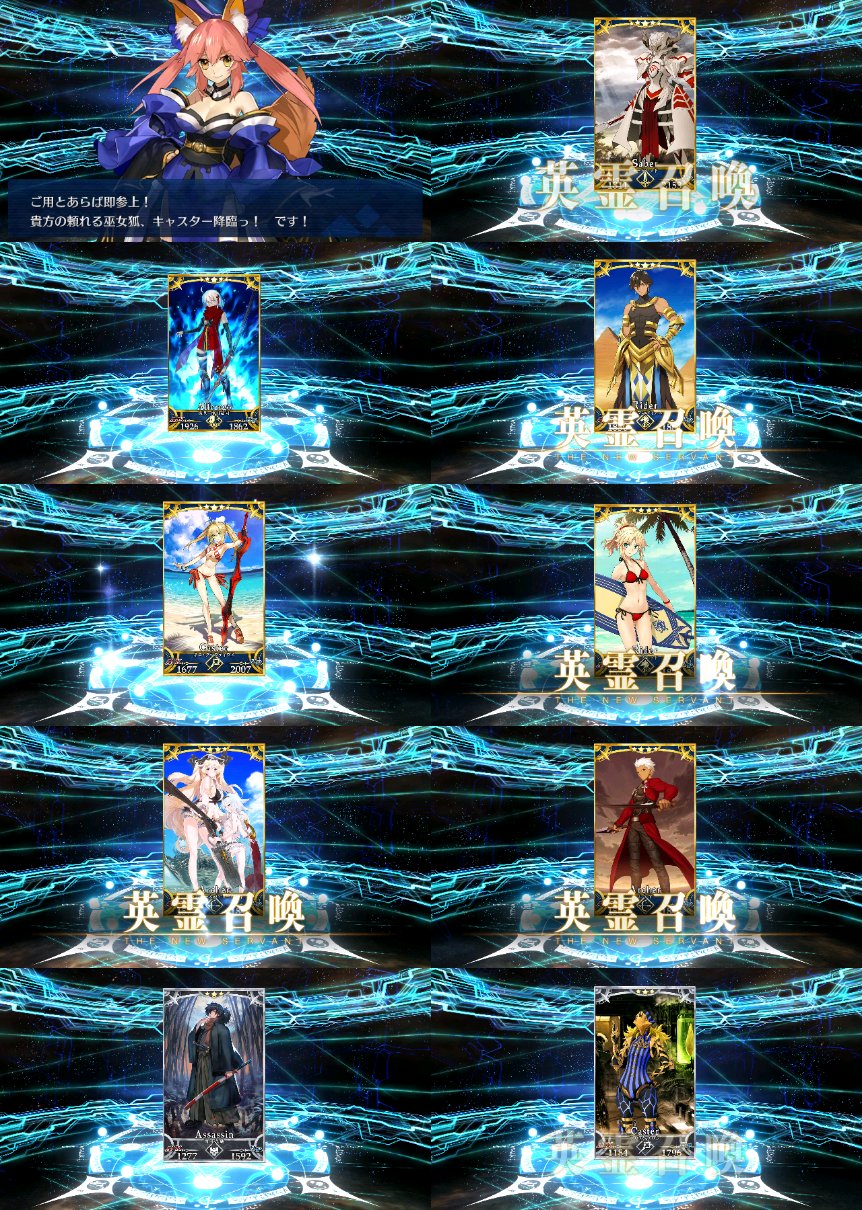 確率は変わっとらんよなー>>911だけど、今日配布の無料石十連目で来た!これでうちのバサスロットやメルトが輝くぞ!水着に向けて石や呼符も残せる…ウレシイ…ウレシイ…