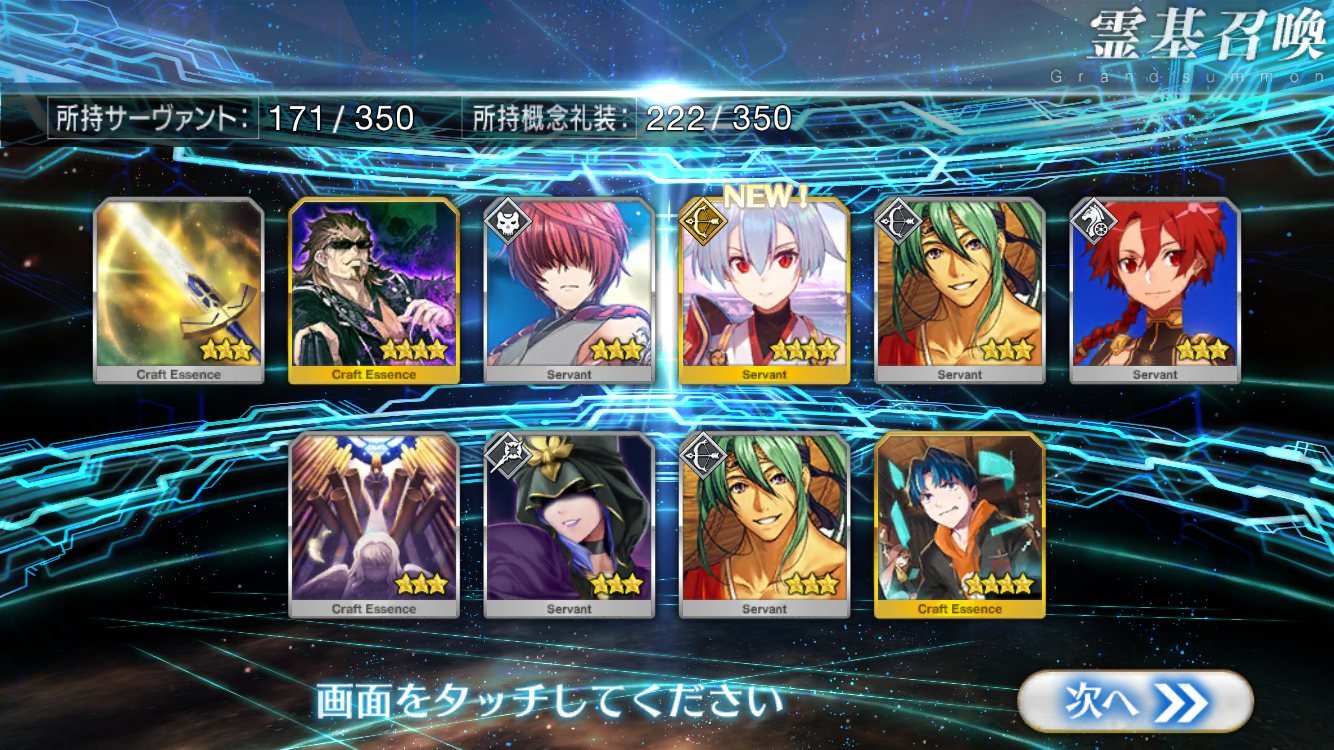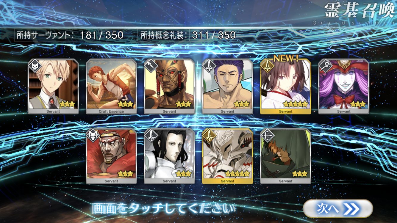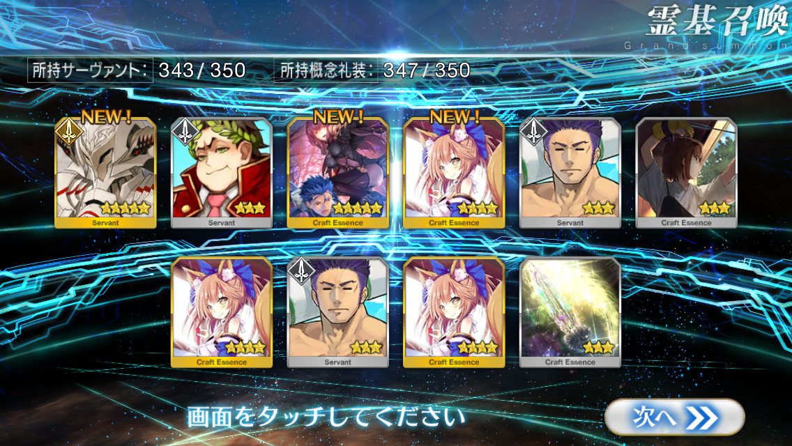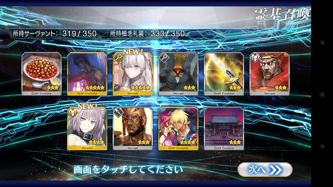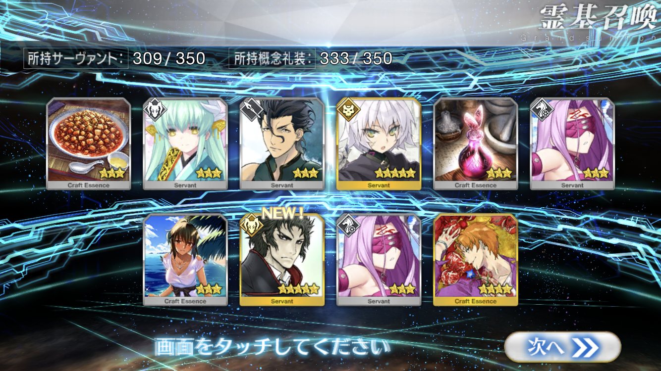 確率は変わっとらんよなー>>911だけど、今日配布の無料石十連目で来た!これでうちのバサスロットやメルトが輝くぞ!水着に向けて石や呼符も残せる…ウレシイ…ウレシイ…