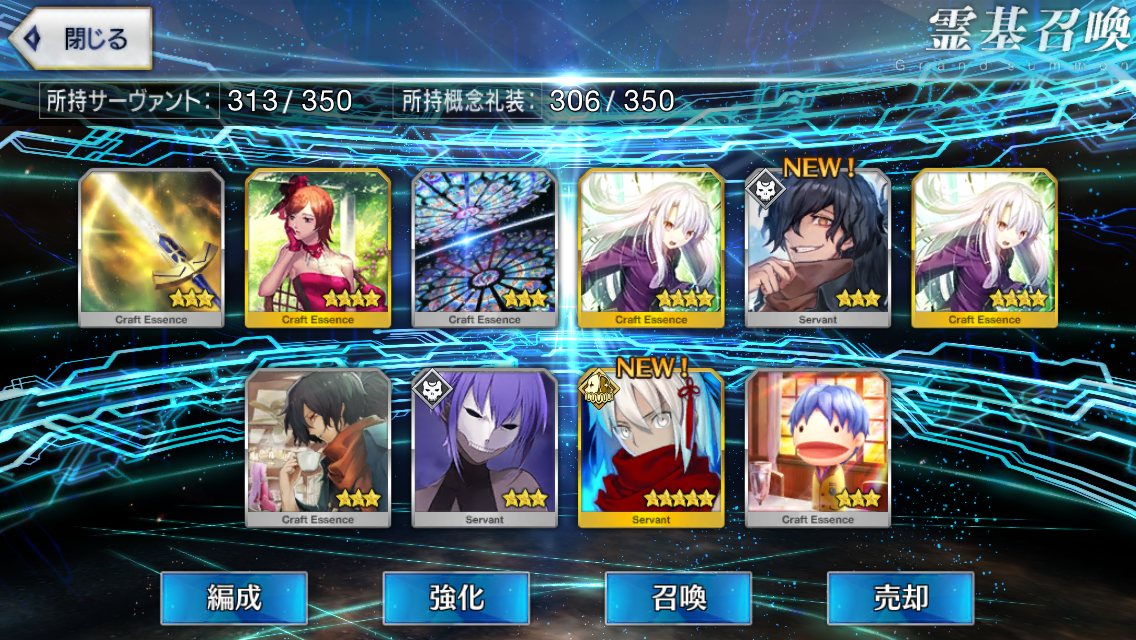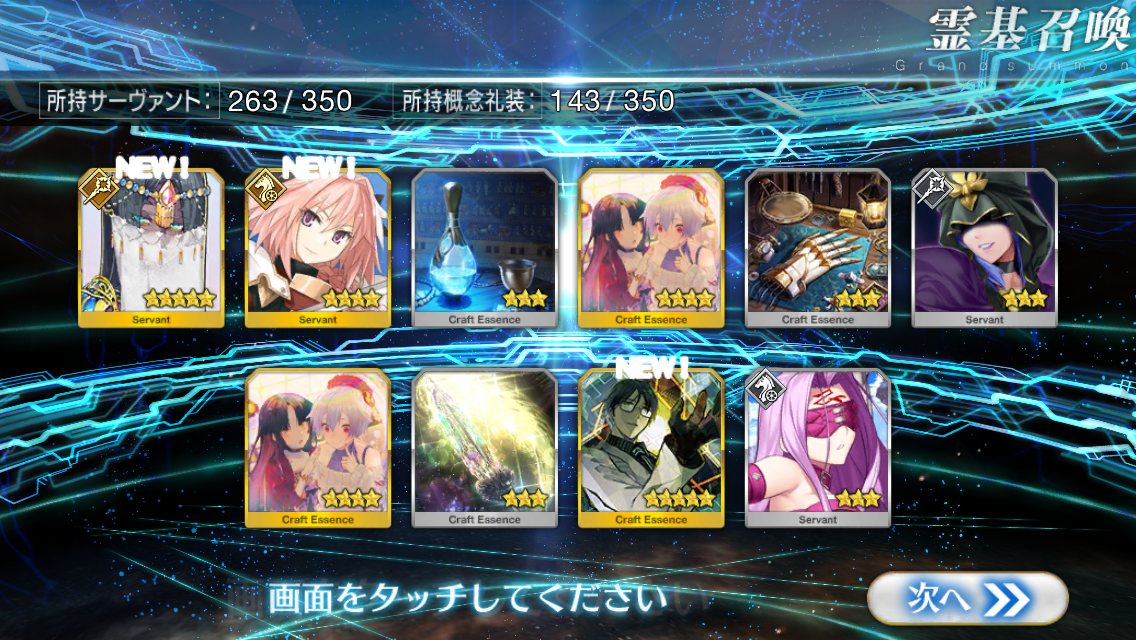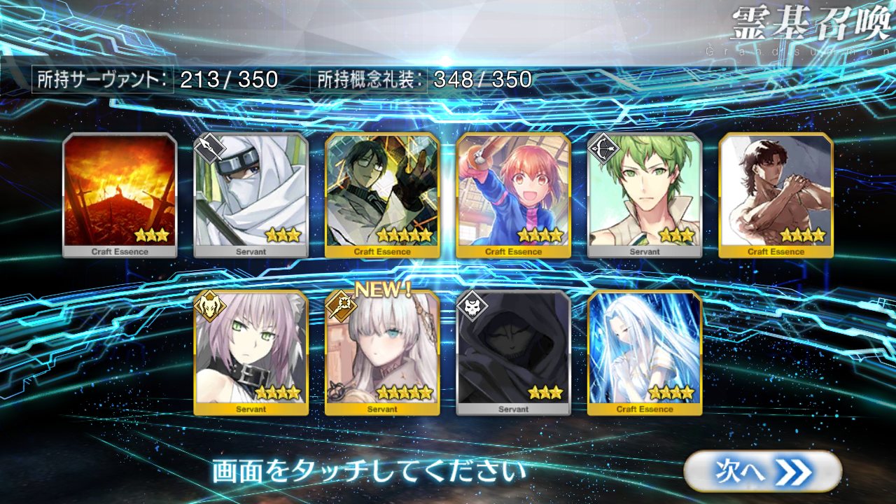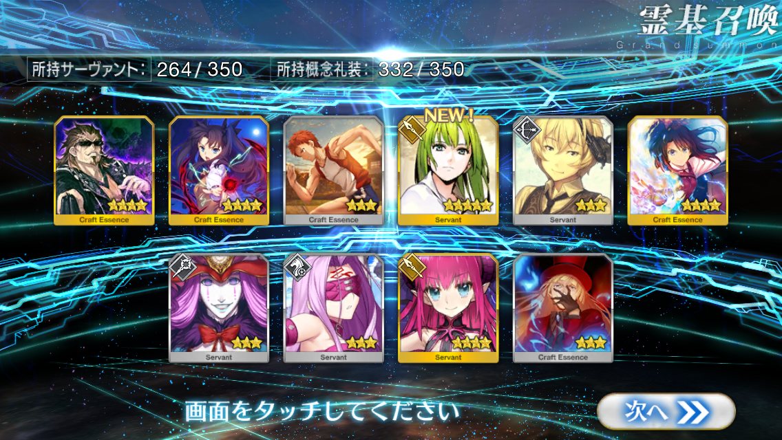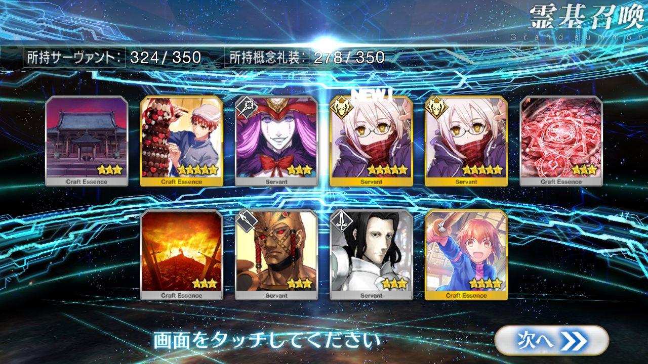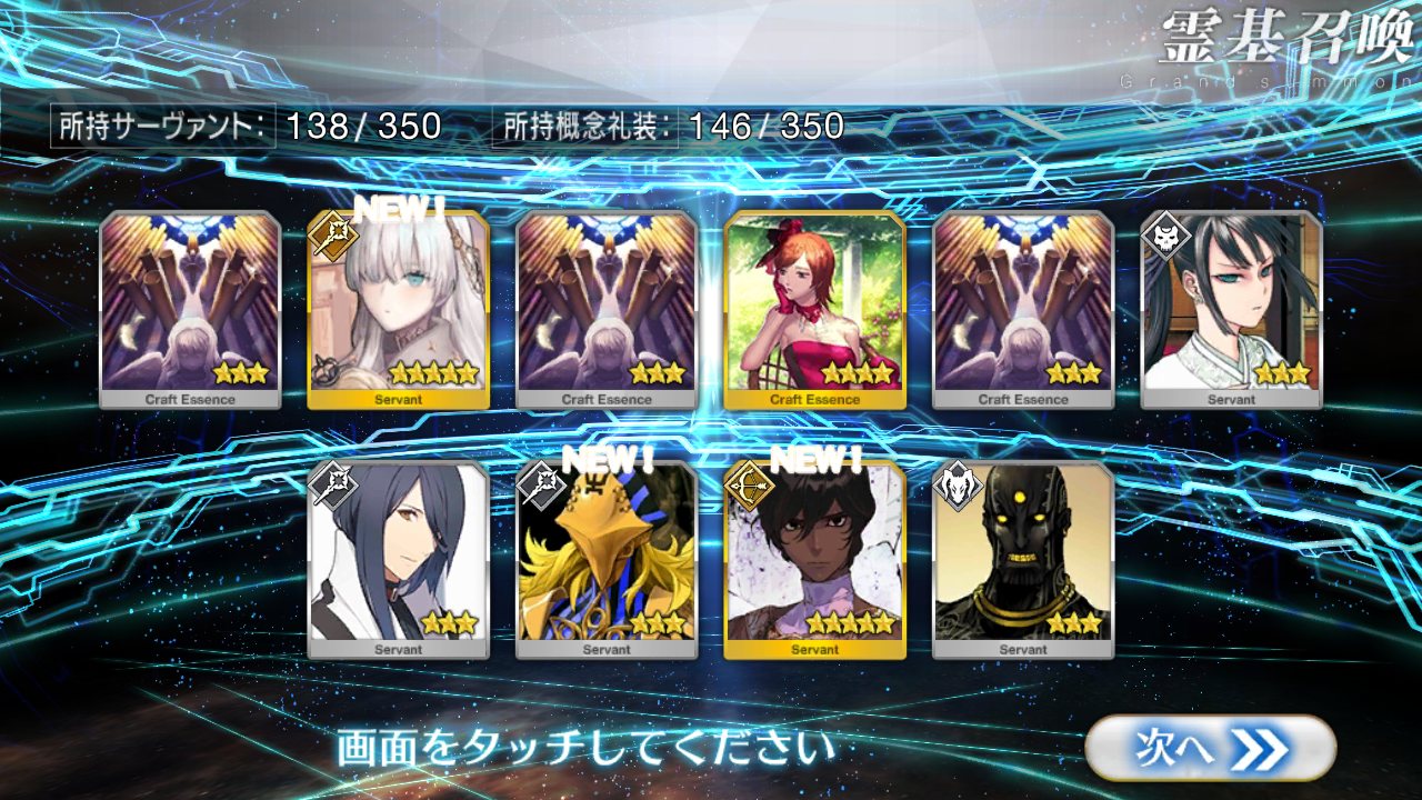 確率は変わっとらんよなー>>911だけど、今日配布の無料石十連目で来た!これでうちのバサスロットやメルトが輝くぞ!水着に向けて石や呼符も残せる…ウレシイ…ウレシイ…