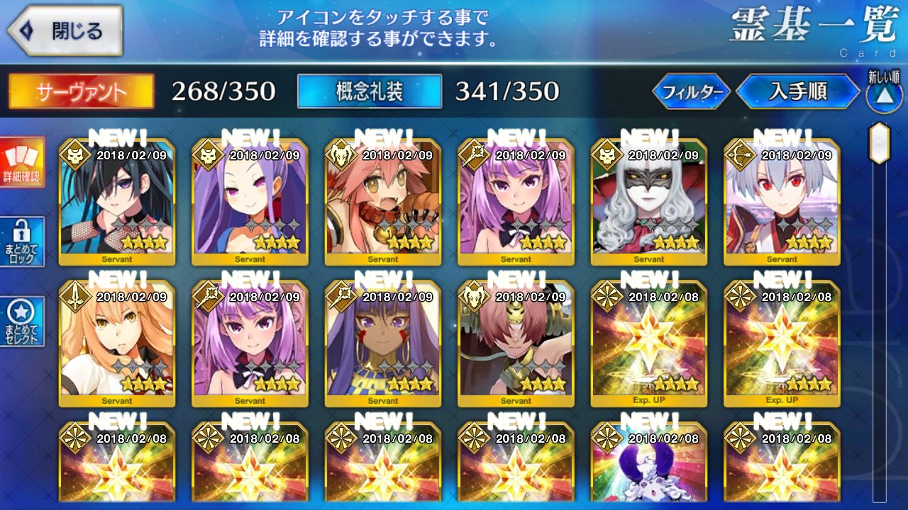 2月の交換呼符に期待じゃ諭吉四人を勢いで投入してしまい結果はジャックと星4鯖8枚でござった