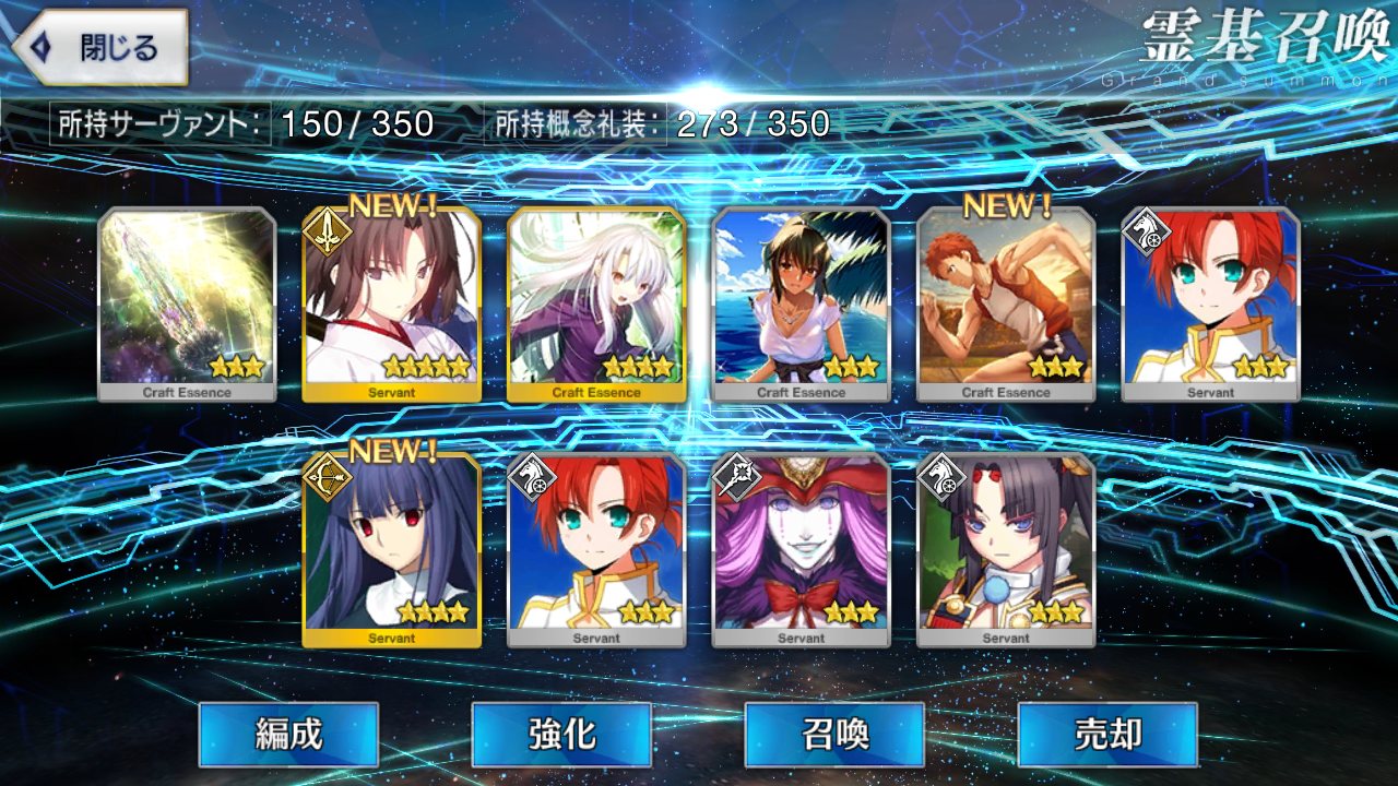 …FGOアーケードありがとございます!!!!この一週間で星5が五人来ました。メチャクチャ嬉しかったけど怖えーよ