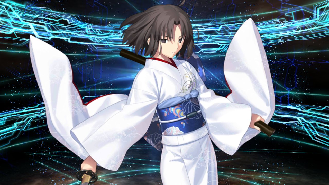 「セイバーのサーヴァント、両儀式。召喚に応じ参上いたしました。……ふふ、これでいいのかしら? 異色にも程があるでしょうけど、よろしくねマスター?」