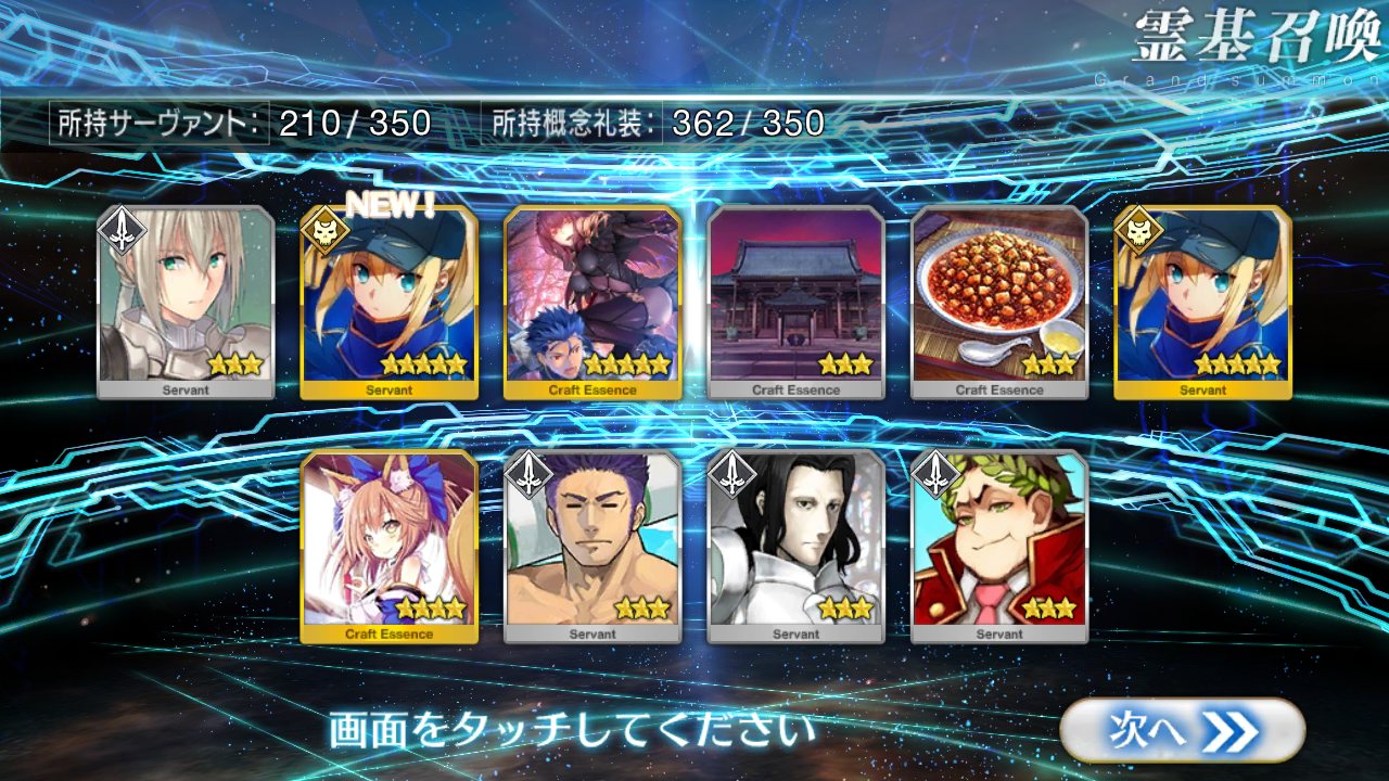石600ちょい使って星4以上の鯖一体も出なかったかつ星5の礼装3枚