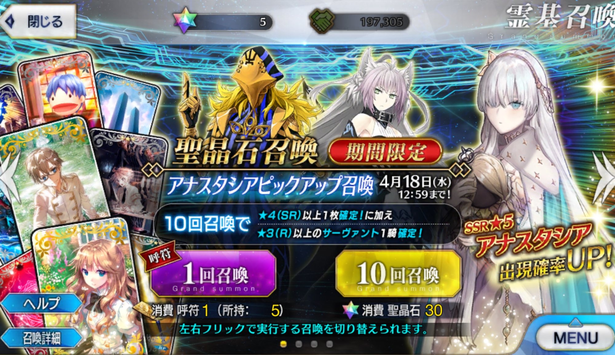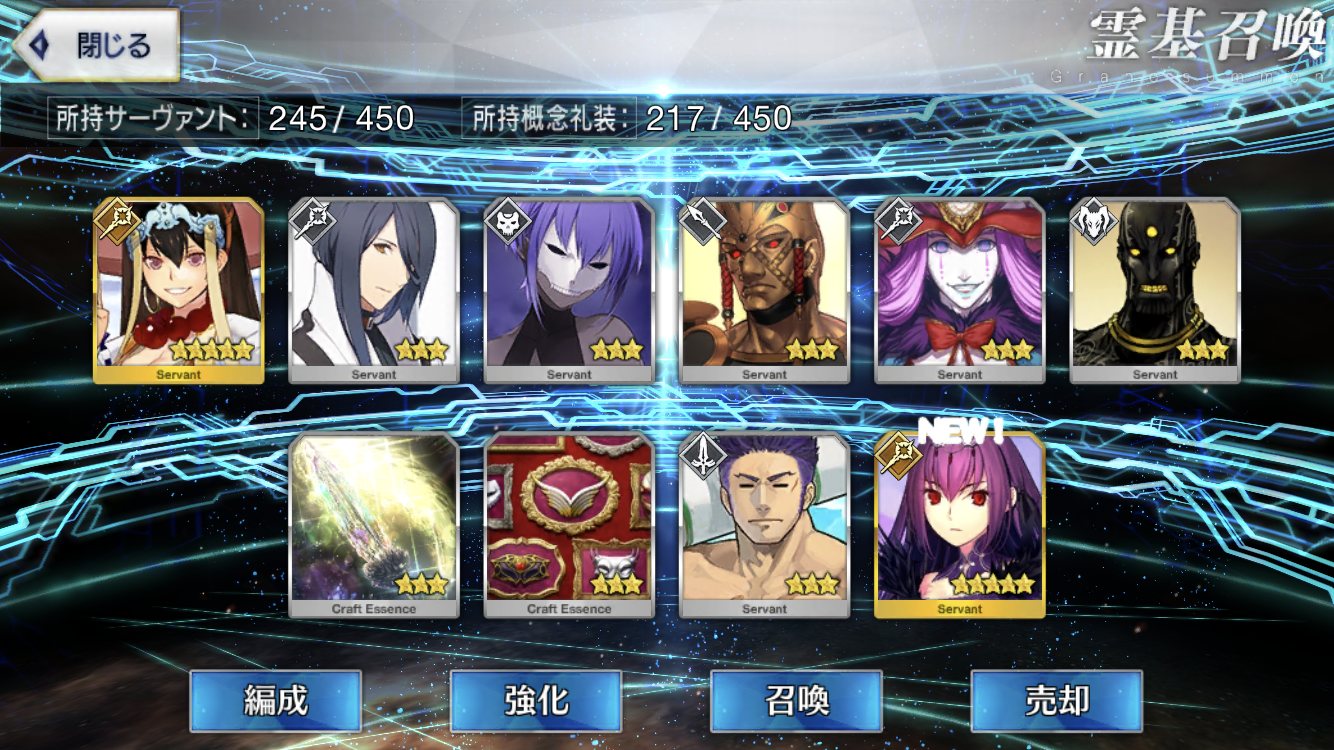 福袋は明日かなぁスカディピックアップ見事100連爆死したー。☆5すり抜けなし、☆4はアナにエリちゃん、そして唯一の救いの初めましてラーマくん・・・