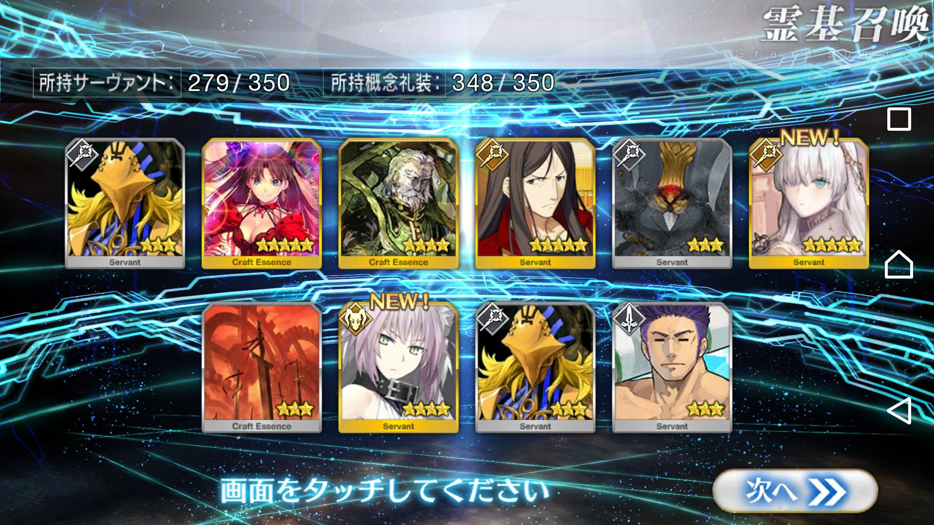 同じく。ゆかなボイスをマイルームで堪能したかった…12時58分というギリギリで挑戦したからか、それともやけになってメンダコのぬいぐるみを触媒にしたおかげか、召喚できました